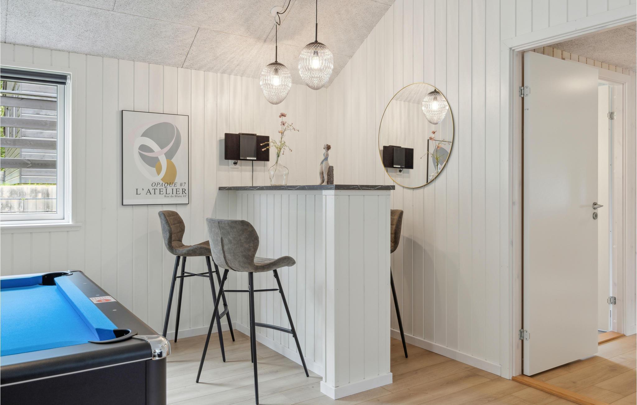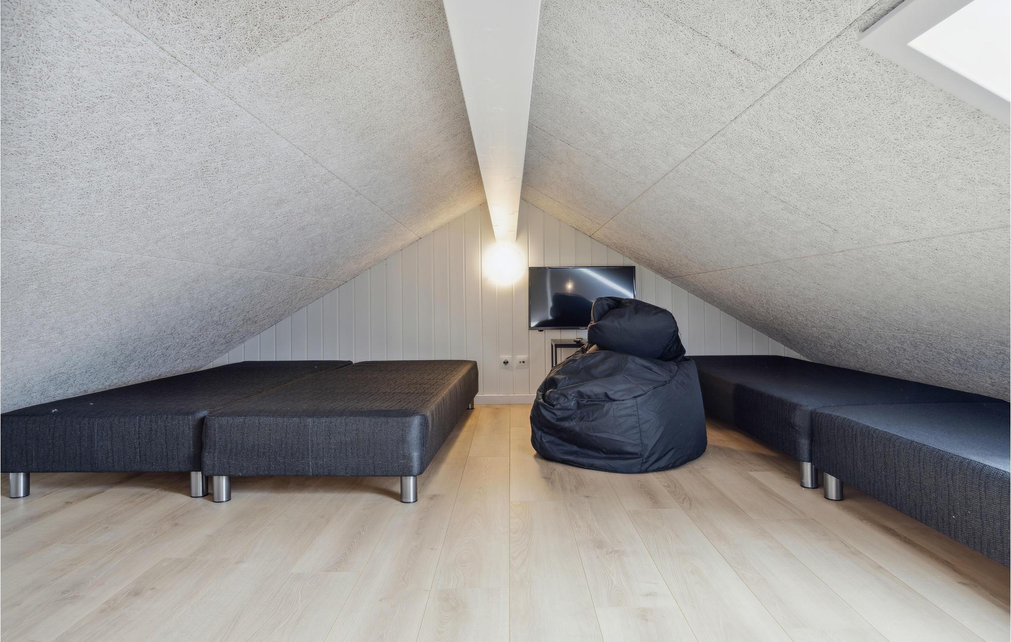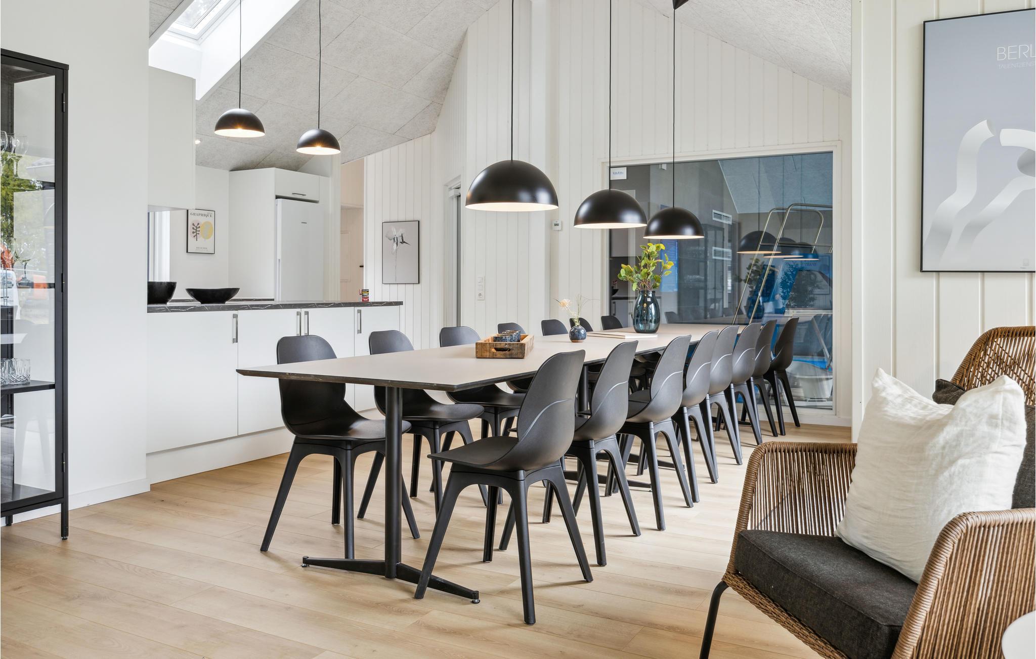 Dieses moderne Ferienhaus befindet sich in einem kleinen Ferienhausdorf in der Nähe von Krakow am See und unweit des Krakower Sees. Es bietet ein hochwertiges, helles Interieur und viele komfortable und familienfreundliche Einrichtungen. Das Herzstück des Hauses ist der schöne Wohnbereich mit offener Küche und Platz für gemeinsame Stunden beim Kochen. Die leckeren Mahlzeiten können Sie dann gemeinsam in geselliger Runde am großen Esstisch genießen. Fordern Sie sich im Aktivitätsraum gegenseitig zu einer Runde Tischtennis, Kicker oder Darts heraus und genießen Sie zwischendurch eine kalte Erfrischung an der Bar. Der schöne Pool mit Wasserrutsche lädt Groß und Klein zu vergnüglichen Stunden ein. Oder genießen Sie eine Massage im großen Whirlpool für 6 Personen und entspannen Sie sich danach in der eigenen Sauna. Das Haus verfügt über sechs Schlafzimmer und einen Dachboden mit vier Matratzen, der besonders gut für Kinder geeignet ist, die es sich dort gemütlich machen möchten. Die drei Badezimmer ergänzen das Angebot und machen das Haus für mehrere Familien oder Freunde sehr geeignet.