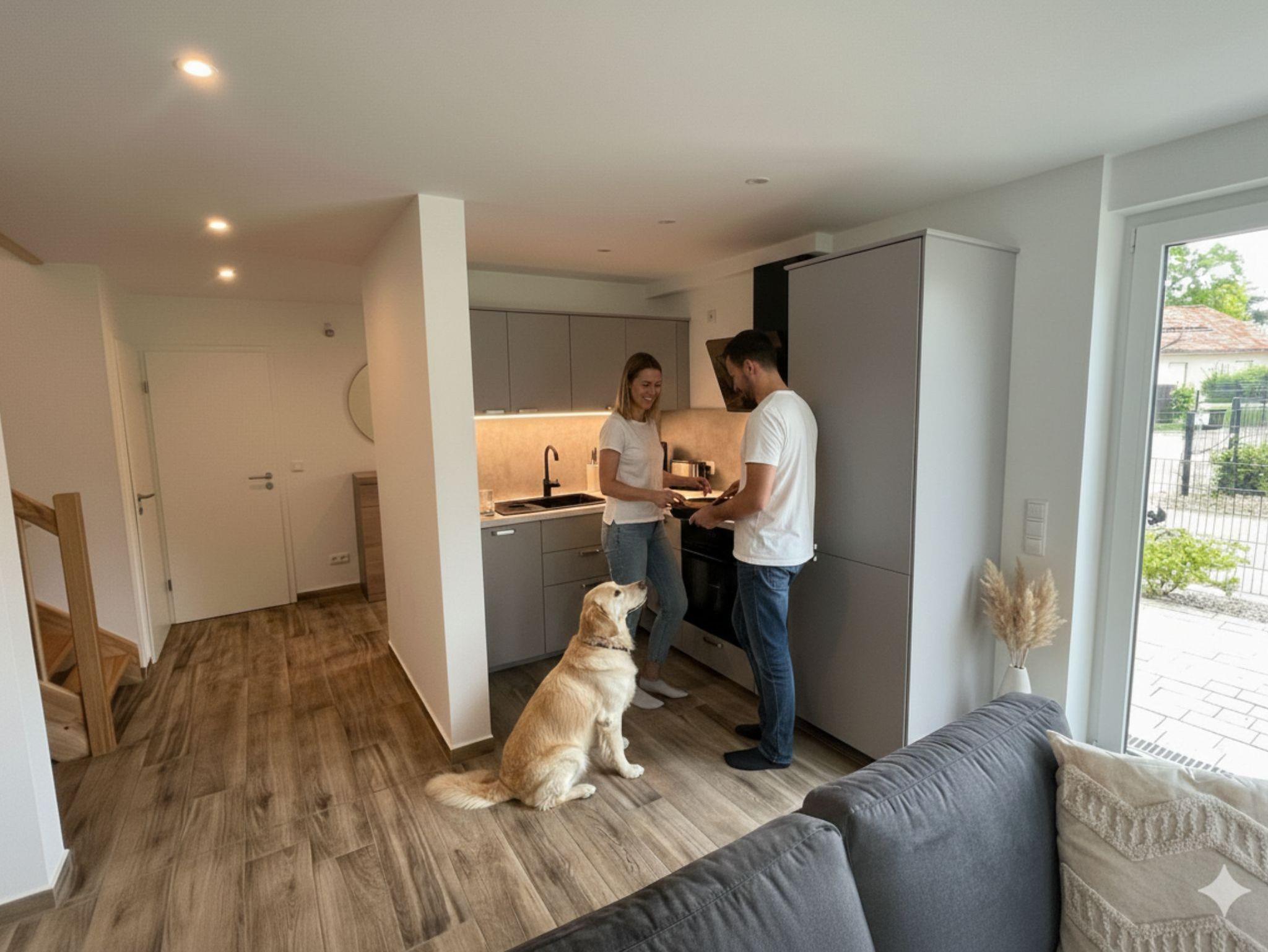 Dreh- und Angelpunkt des Ferienhauses ist der offen gestaltete Wohn- und Essbereich mit angeschlossener Küche. Die lichtdurchfluteten Räumlichkeiten sind farbschematisch hell gehalten und mit modernem Mobiliar eingerichtet. Gerade nach langen, aktivitätsreichen Tagen kommt man gerne nach Hause zurück und kann den Abend in guter Gesellschaft ausklingen lassen.