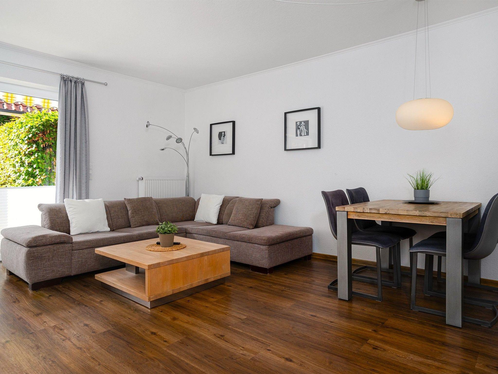 Die Ferienwohnung Nordwind OST bietet auf 80qm viel Raum für einen erholsamen Aufenthalt. Neben zwei geräumigen Schlafzimmern, die mit einem Doppelbett und einem Boxspringbett ausgestattet sind, bietet der lichtdurchflutete Wohnbereich ein großes Sofa zum Entspannen, eine offene und voll ausgestattete Einbauküche sowie direkten Zugang auf die sonnige Terrasse, die sich perfekt für gemütliche Stunden im Freien eignet. Das großzügige Tageslichtbad besticht durch seine ebenerdige Dusche und die Doppelwaschbecken. Besonders hervorzuheben ist die Kombination aus zentraler Lage und dem zusätzlichen Komfort eines eigenen Parkplatzes sowie einer privaten Terrasse, die zu entspannten Momenten im Freien einlädt. Auch hier Vierbeiner ist in dieser Wohnung herzlich Willkommen!