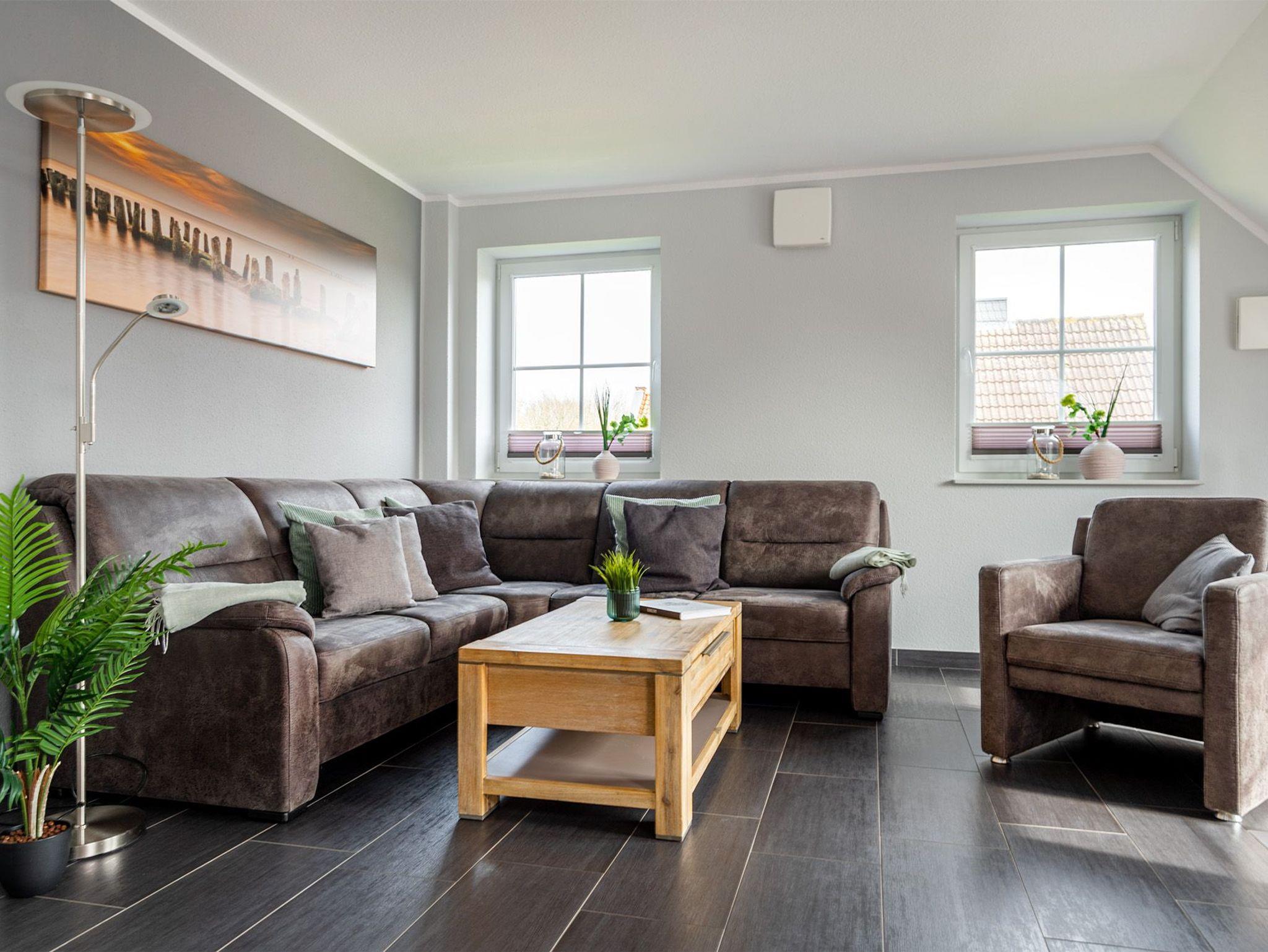 Herzlich willkommen in unserer Ferienwohnung Küstenzeit. Zur modernen und hochwertigen Einrichtung dieser Wohnung im Obergeschoss gehören zwei Schlafzimmer, ein Tageslichtbad, Fußbodenheizung sowie eine voll ausgestattete Küche. Der lichtdurchflutete und gemütliche Wohnraum bietet mit seinem großen Esstisch viel Platz zum gemeinsamen Verweilen, sowie Zugang zum möbilierten Balkon, von dem aus Sie die bekannten Greetsieler Zwillingsmühlen sehen und die Sonnenstunden genießen können. Das Hauptschlafzimmer bietet Ihnen ein gemütliches Doppelbett und einen geräumigen Kleiderschrank. Das zweite Schlafzimmer befindet sich im ausgebauten Spitzboden (Galerie) und verfügt über zwei Einzelbetten und eine Sitzecke. Selbstverständlich stehen Ihnen ein eigener Parkplatz, sowie eine Abstellraum für Ihre Fahrräder zur Verfügung.