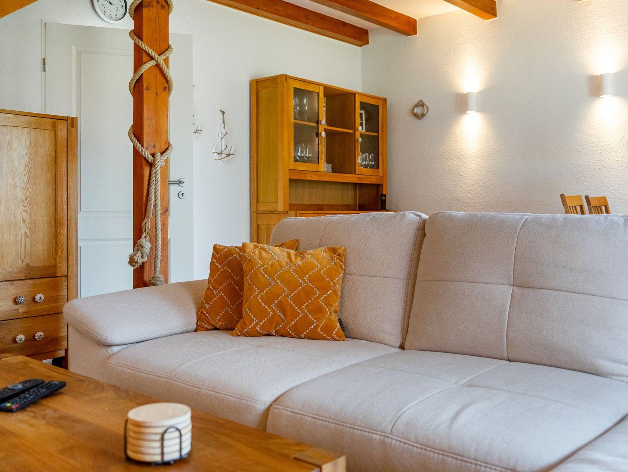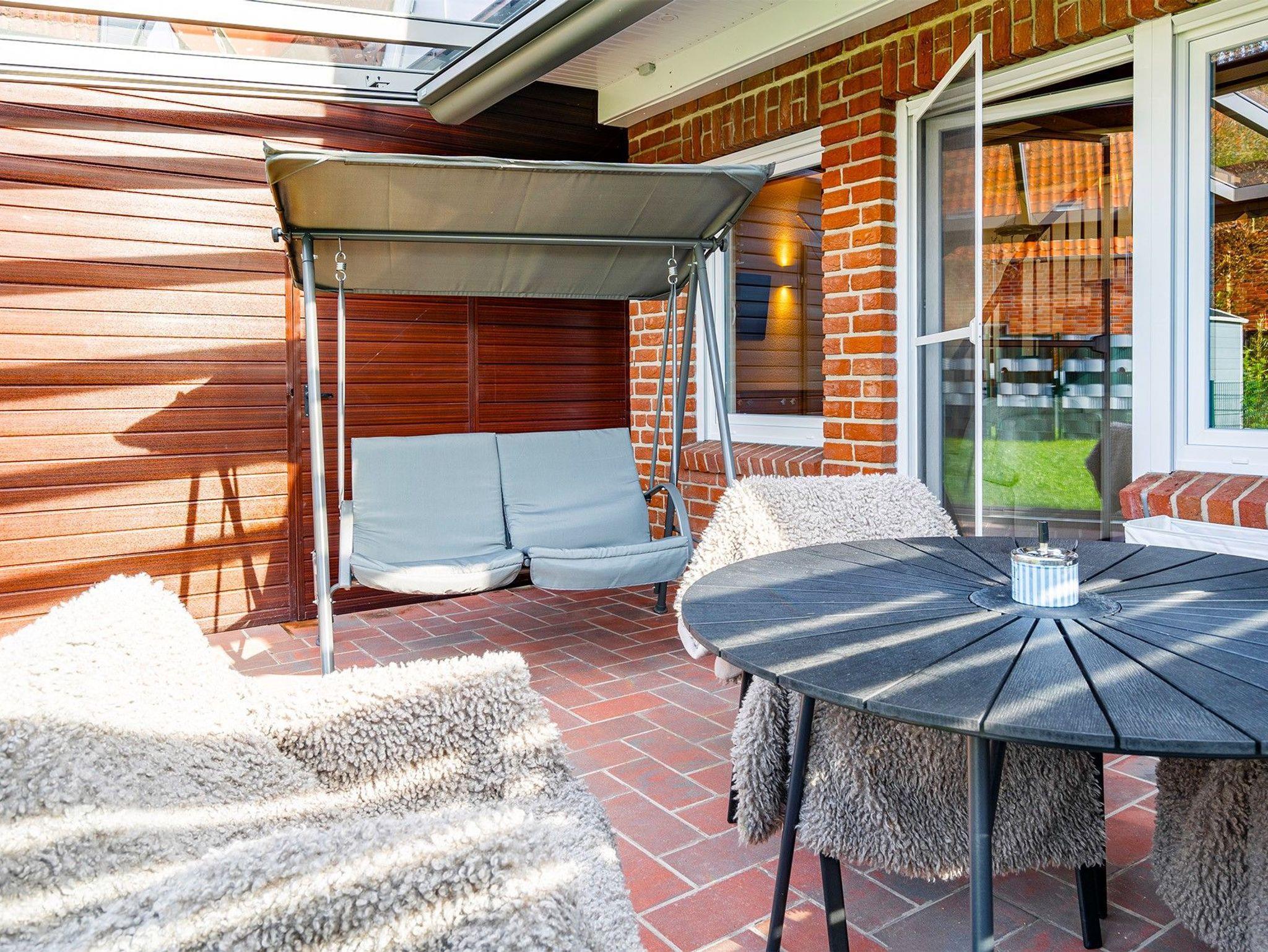 Viel draußen sitzen und die frische Nordseeluft genießen - das ist in unserem Ferienhaus Ruhehafen sogar trotz ostfriesischem Schietwetter gut möglich. Denn dieses kürzlich umfassend renovierte Ferienhaus bietet einen Garten, eine voll überdachte und mit Glastüren verschließbare Terrasse sowie einen großen Sonnenbalkon. Auf etwa 70qm finden Sie im Erdgeschoss einen hellen Wohn-Ess-Bereich, sowie eine großzügige separate Küche. Die Einrichtung im Landhausstil sowie die Deckenbalken aus Holz strahlen eine gemütliche und warme Atmosphäre aus. Neben einem Abstellraum befindet sich im Erdgeschoss ebenfalls das Tageslichtbad mit einer ebenerdigen Dusche. Die großzügigen Schlafzimmer mit bequemen Boxspringbetten und großen Einbauschränken finden Sie im Obergeschoss, ebenso ein kleines Gäste-WC. Das Haus verfügt außerdem über zwei Parkplätze, was sich für den gemeinsamen Urlaub mit Freunden anbietet. Für Fahrräder steht im Garten ein Abstellraum zur Verfügung.