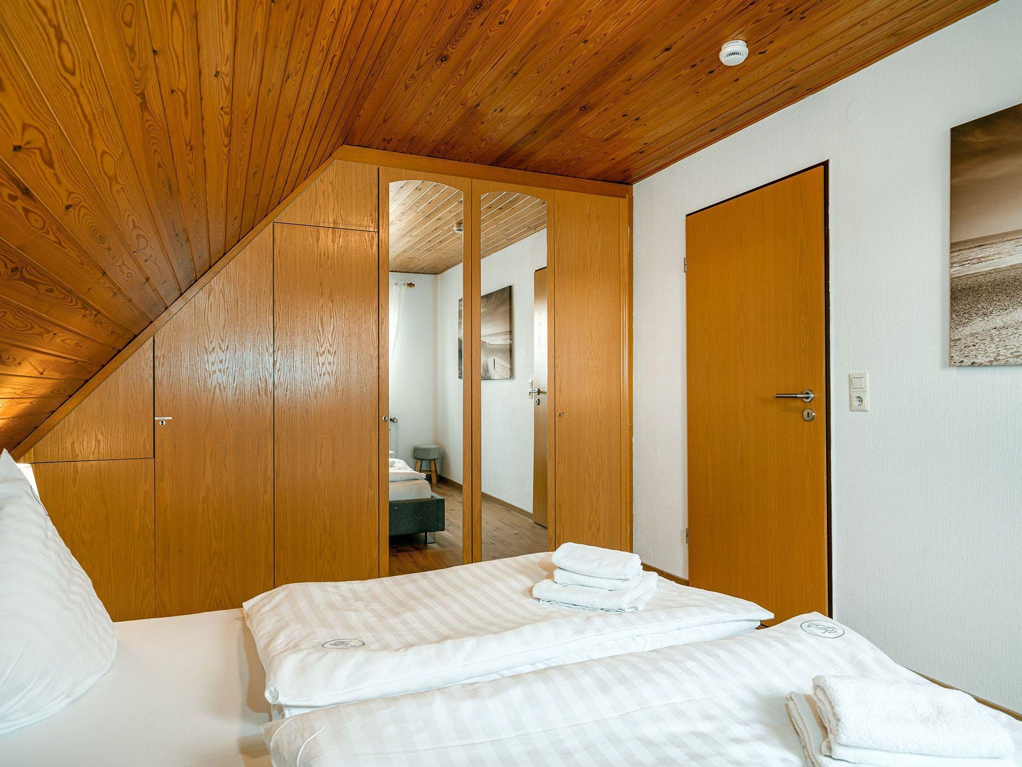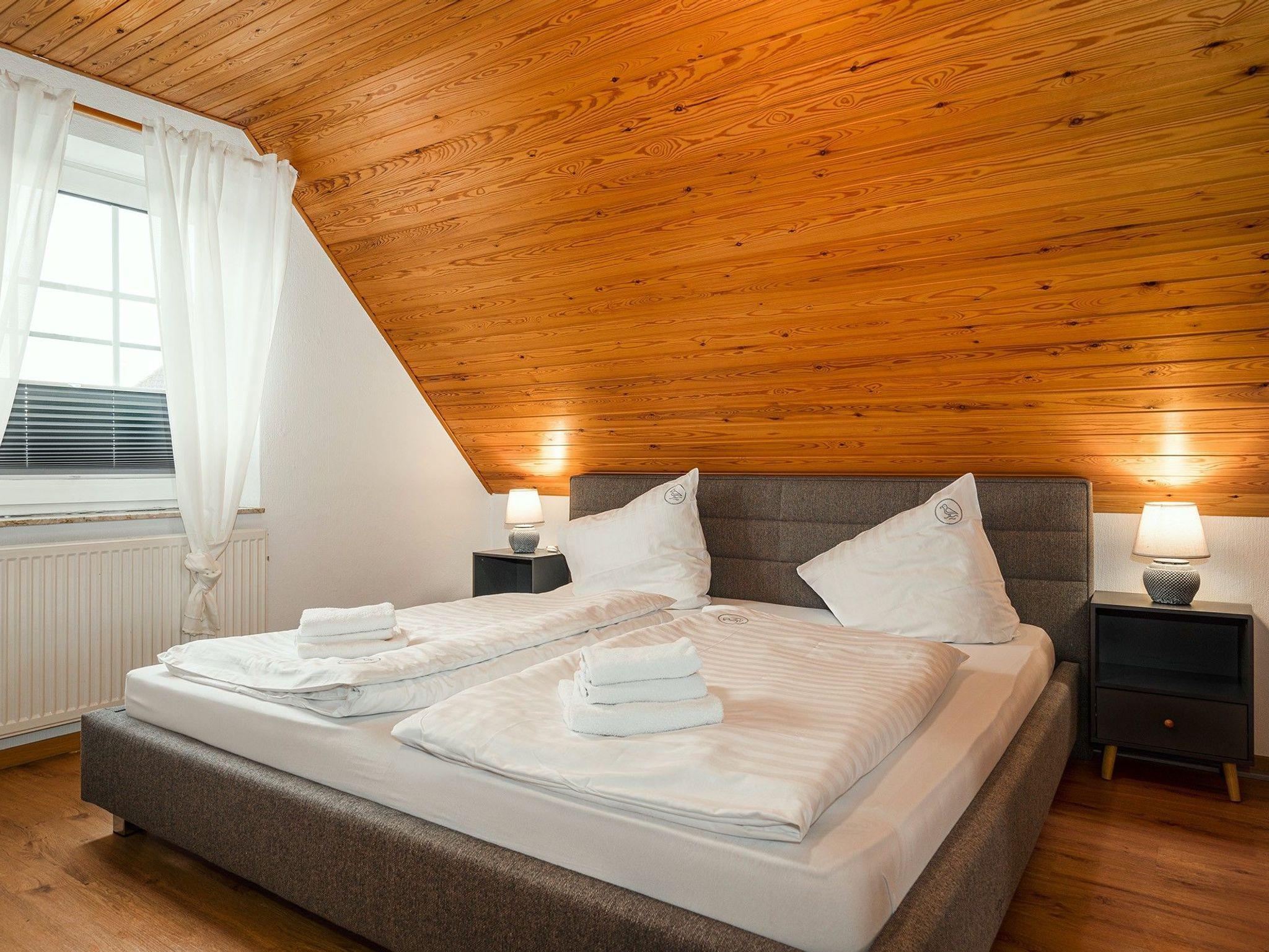 * bitte beachten Sie, dass das Schlafzimmer mit Einzelbetten auch als Durchgangszimmer zum Dachgeschoss dient. Weiterhin kann eines der Einzelbetten als Tandembett ausgezogen werden, sodass auf Anfrage auch insgesamt sieben Personen dort untergebracht werden können.*