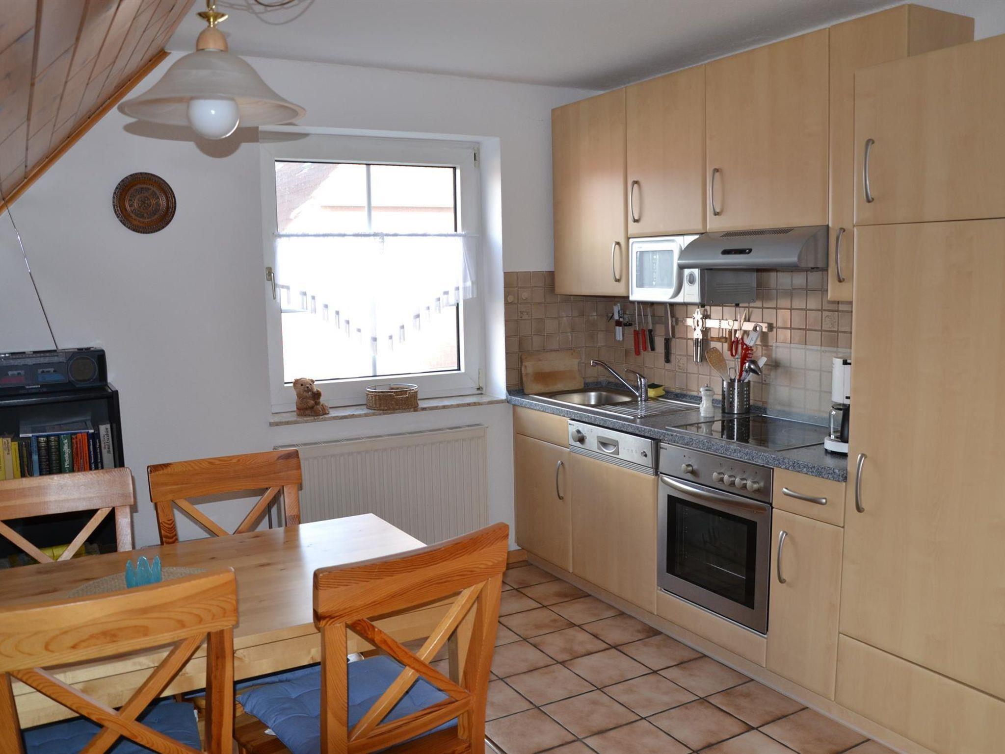 Beide Wohnungen verfügen über einen großzügigen Wohnraum mit Ledersitzgarnitur und Kaminofen (nur als Notfallheizung nutzbar). Die moderne Küchenzeile (Spülmaschine, Mikrowelle, Kühl-Gefrierkombination etc.) ist ebenso wie die Essecke für 4 Personen in den Wohnraum integriert. 2 Schlafzimmer, Kinderreisebett u. Kinderhochstuhl, Du /WC, Terrasse oder Balkon und Garten mit Gartenmöbeln, Grill, Sat-TV, Stereoanlage/Radio und UntKerstellmöglichkeit für Fahrräder runden das Angebot ab. Zu jeder Wohnung gehört ein Parkplatz. Bettwäsche auf Anfrage.