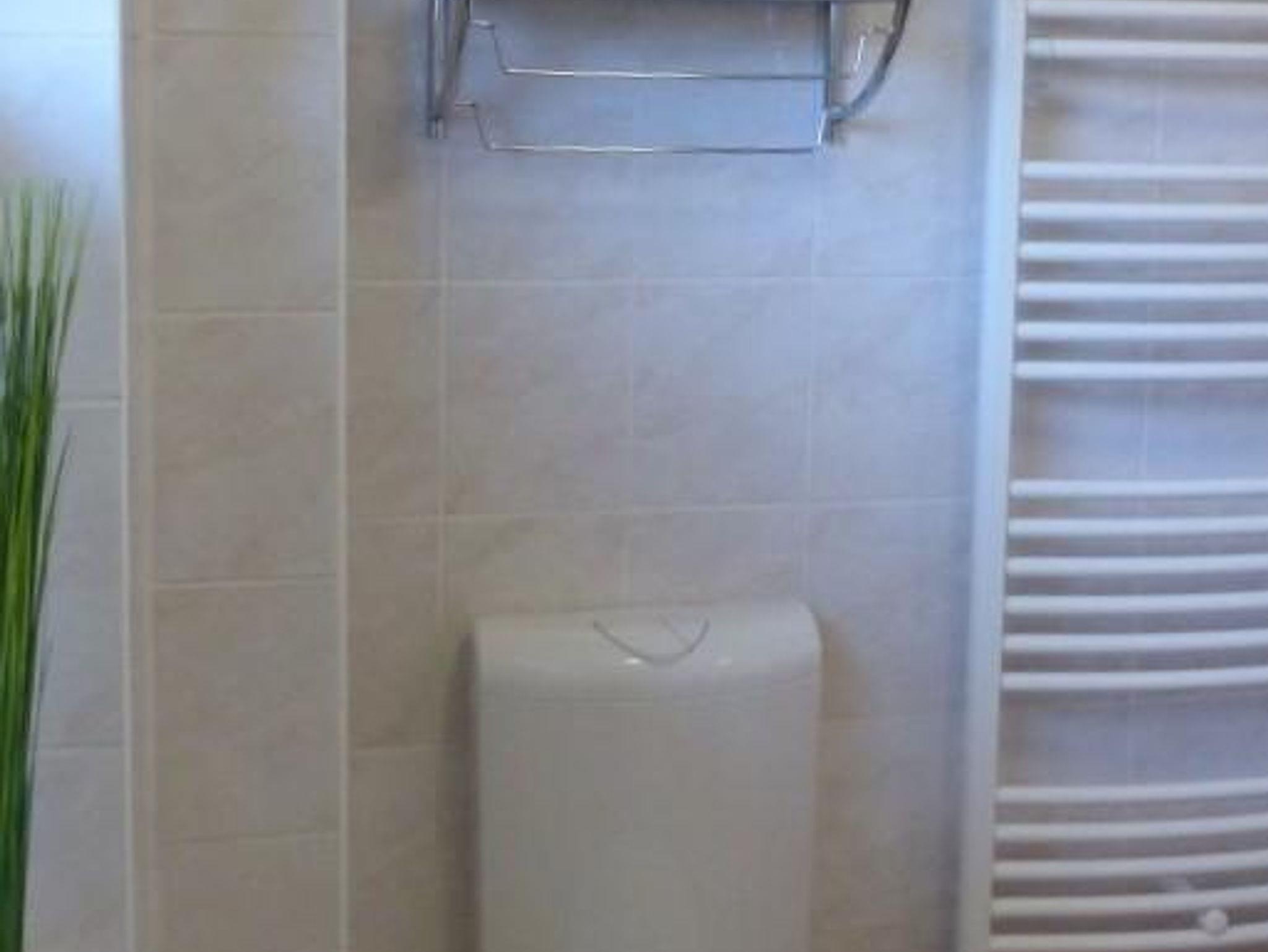 Sie finden in der Wohnung ein modernes Tageslicht-Badezimmer mit Dusche (flacher Einstieg), WC und Waschtisch.