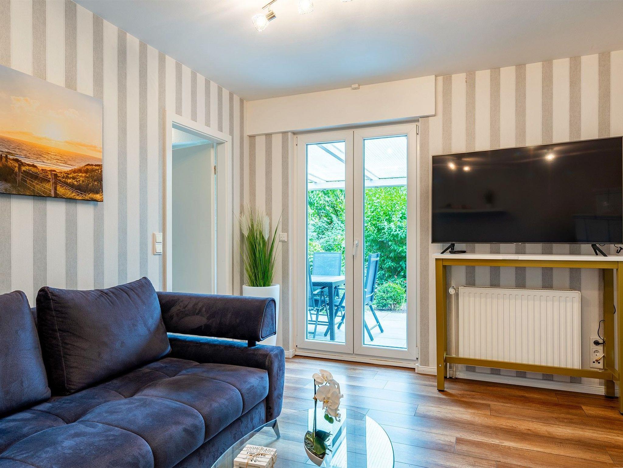 * die Wohnung verfügt über ein Schlafsofa, sodass bei Buchung mit 6 Personen das Schlafsofa als drittes Bett genutzt wird! Beachten Sie bitte weiterhin, dass es eine Stufe vom Flur zur Küche und zum Wohnbereich gibt und die Wohnung demnach nicht komplett ebenerdig ist.*