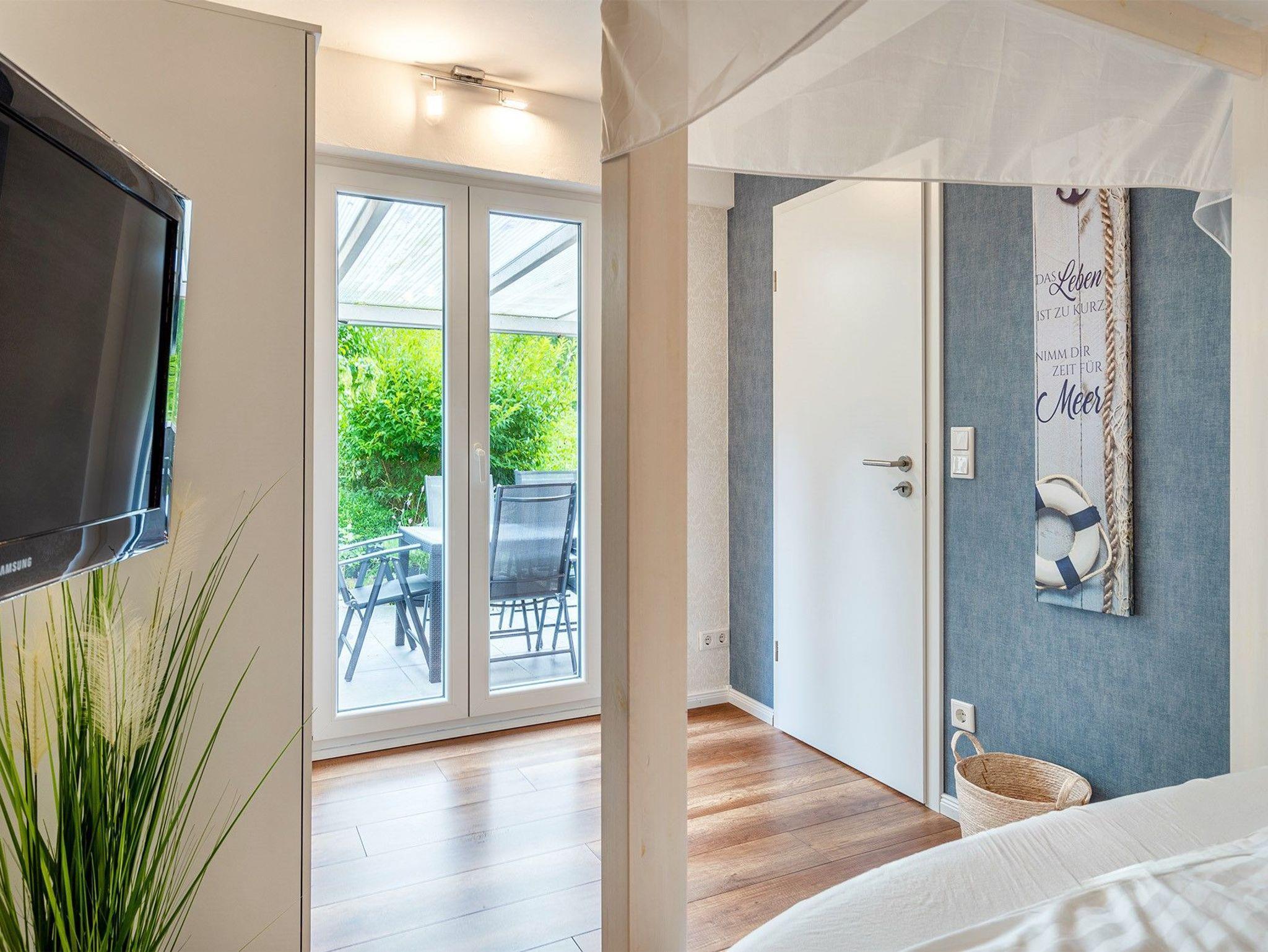 Das „Kamin Apartment“ bietet Ihnen auf rund 75qm eine stilvolle Kombination aus traditionellem Charme und modernem Komfort. Die im Erdgeschoss gelegene Ferienwohnung wurde mit viel Liebe zum Detail renoviert ? besondere Akzente wie der originale Friesen-Kachelofen sorgen für eine behagliche Atmosphäre und laden nach einem erlebnisreichen Tag zum Entspannen ein. Die Wohnung verfügt über einen hellen Wohnbereich mit großem Sofa, eine voll ausgestattete separate Küche mit großzügiger Sitzecke sowie zwei gemütliche Schlafzimmer, wovon eines ein normal großes Doppelbett und das zweite ein 1,40m breites Bett bietet. Ein besonderes Highlight: Von einem der Schlafzimmer genießen Sie einen direkten Blick auf die berühmte „grüne Mühle“ der Region. Zwei Terrassen erweitern den Wohnraum ins Freie ? eine davon ist überdacht und mit einer komfortablen Sitzgruppe ausgestattet, die andere bietet Sonnenliegen und einen freien Blick auf die Mühle ? perfekt für entspannte Stunden im Freien. Auch Hunde sind im „Kamin Apartment“ herzlich willkommen. Für Ihren Komfort stehen Ihnen ein eigener PKW-Stellplatz sowie eine überdachte Abstellmöglichkeit für Fahrräder zur Verfügung. Die Wohnung verfügt über zwei Fernseher, einer befindet sich im Wohnzimmer, der andere in dem Schlafzimmer mit dem 1,4m großen Bett.