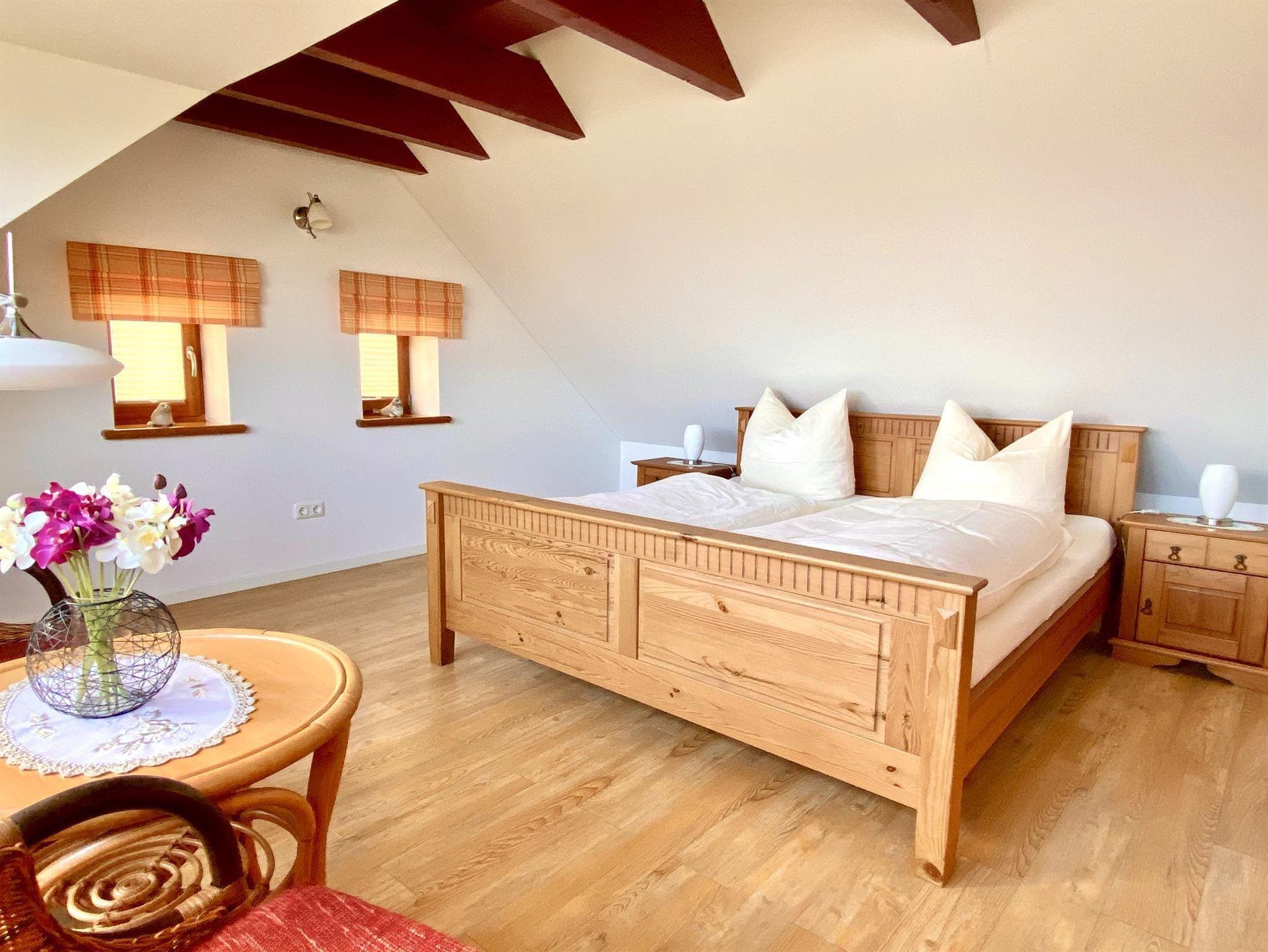 Die Wohnung 3 hat eine Wohnfläche von 90 m² und besteht aus einem großen Wohnzimmer mit Kamin, einer Essecke und Einbauküche, zwei Schlafzimmern mit TV und zwei Badezimmern. Auch diese Wohnung liegt direkt am Deich und ist nur 2 Minuten vom Ortskern entfernt.