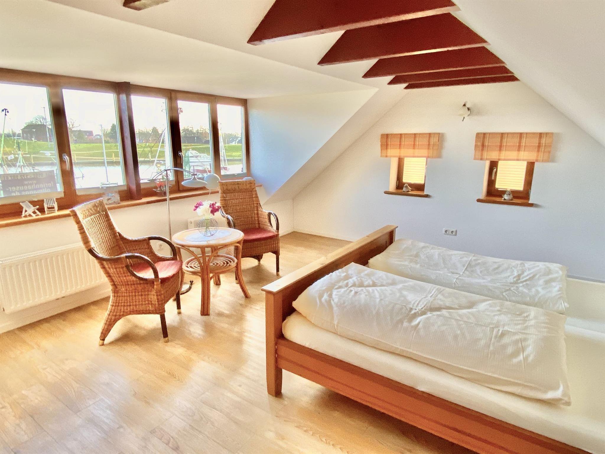 Die Wohnung 2 im Haus Bummert am Hafen bietet 46 m² Wohnfläche mit Blick auf Yachthafen und Fischereihafen.