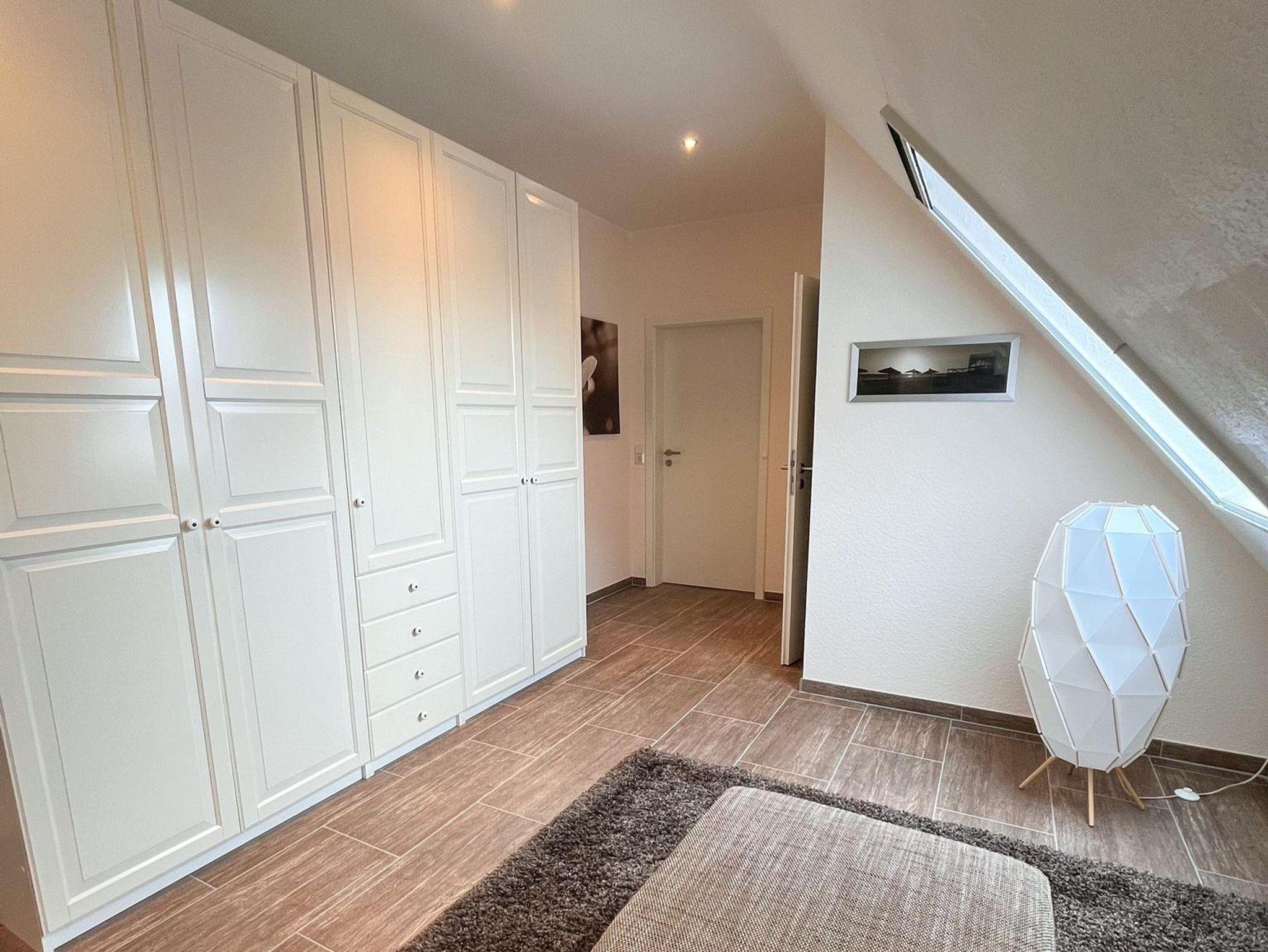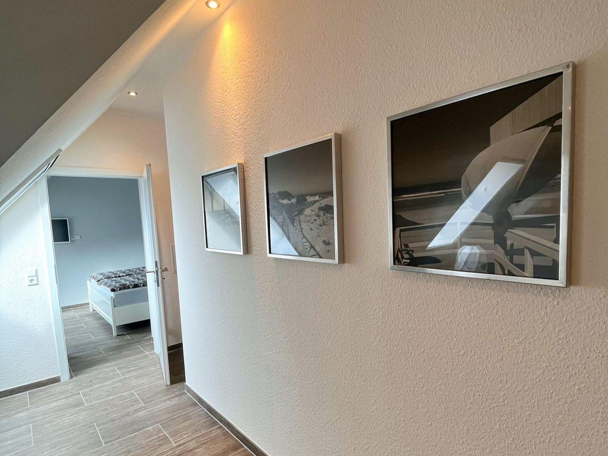 Auf dem Weg in die zwei Schlafzimmer (Doppelbett und 2 Einzelbetten - sind zusammenstellbar) gehen Sie durch einen großzügigen (Wohn-) Flur in dem auch ein weiteres kleines Bett (90x190cm) auf Anfrage aufgestellt werden kann. Jeweils ein Abstellraum sind von der Küche und vom Flur aus zu erreichen.