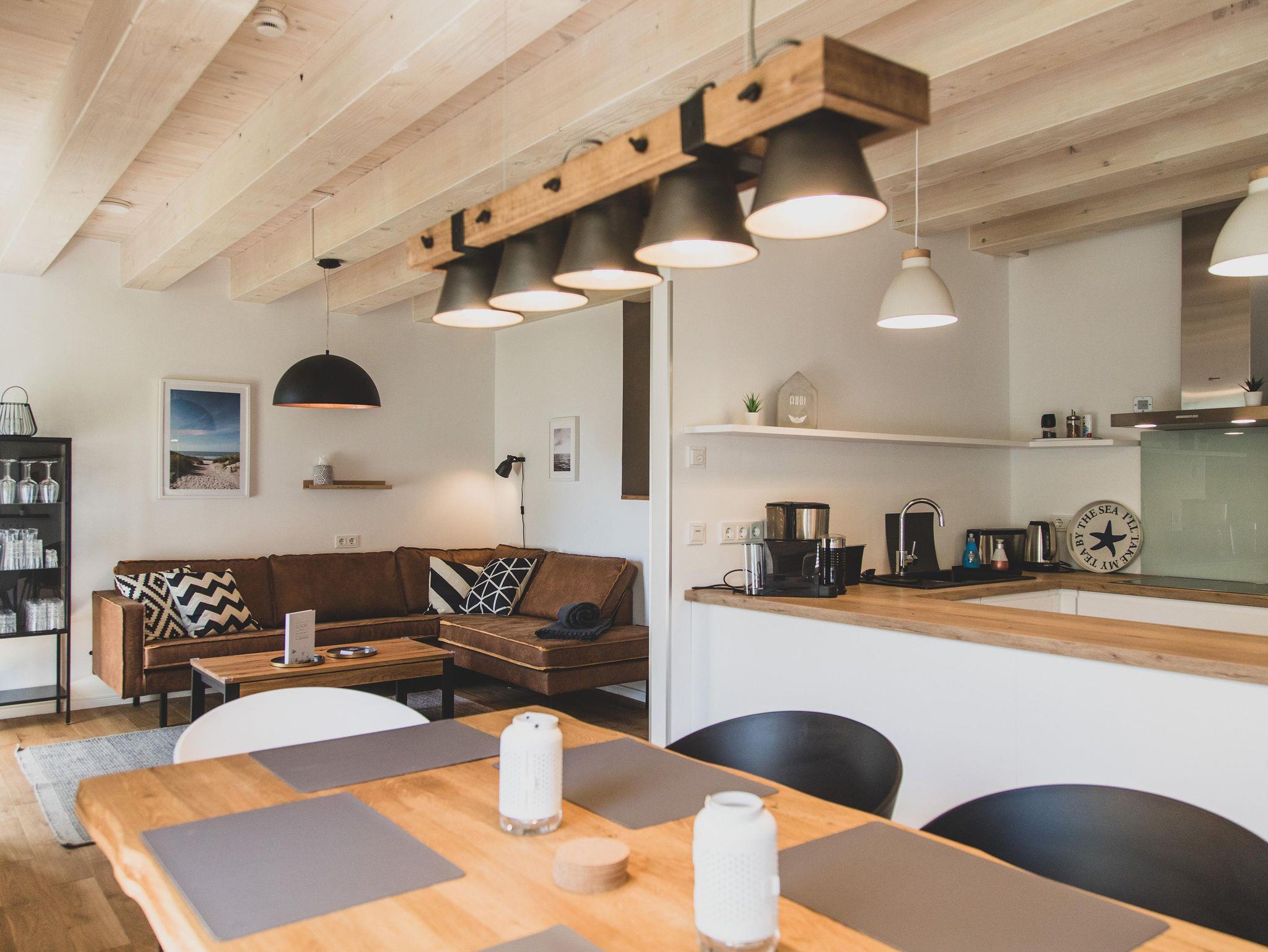 Kochliebhaber über eine voll ausgestattete Küche, einen großen Essbereich und einen gemütlichen Wohnbereich mit einem 75 Zoll Fernseher sowie einer Sonos Musikbox freuen. Auch befindet sich hier ein Gäste WC und ein großzügiger Abstellraum.