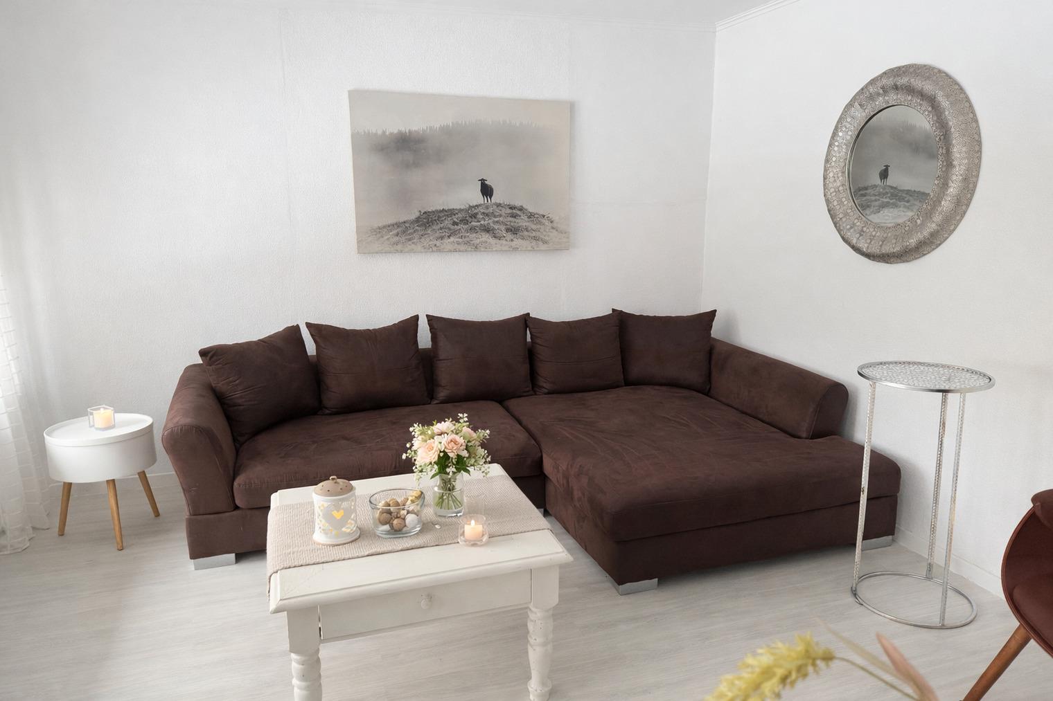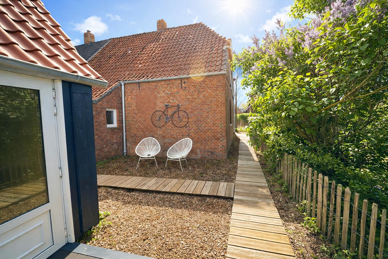 ?? Ein Zuhause auf Zeit – mit Herz eingerichtet Die liebevoll renovierte Doppelhaushälfte bietet Raum für zwei Menschen, die das Einfache und Echte lieben. Jeder Raum wurde mit Sorgfalt gestaltet — warm, klar und hochwertig. Drinnen erwartet Sie: ein helles, gemütliches Wohnzimmer mit großer Eckcouch und Smart-TV ein Schlafzimmer mit einem großzügigen Doppelbett (180×200 cm) und TV eine große Wohnküche, ausgestattet mit modernen Miele-Geräten ein modernes Bad mit bodentiefer Regendusche & Doppelwaschbecken Waschmaschine, Handtücher & Bettwäsche sind selbstverständlich vorhanden Elektrische Jalousien sorgen für Geborgenheit, Insektenschutz für ruhige Sommernächte. Und über allem liegt dieses Gefühl: Hier ist alles leicht. ?? Ein Garten wie aus einem Sommertraum Der weitläufige Naturgarten ist ein kleines Paradies — wildromantisch, grün, lebendig. Zwischen Pflaumen-, Mirabellen- und Apfelbäumen findet jeder seinen Lieblingsplatz. Vielleicht ist es… die Hängematte, sanft schaukelnd im Schatten der Bäume der Strandkorb auf der Holzterrasse, mit Blick ins Grün oder das Gartenhaus mit Kaminofen — der perfekte Ort für gemütliche Stunden am Abend Und wenn im Spätsommer die Früchte reif sind, dürfen Sie sich gerne bedienen. Hier gehört die Natur einfach dazu.