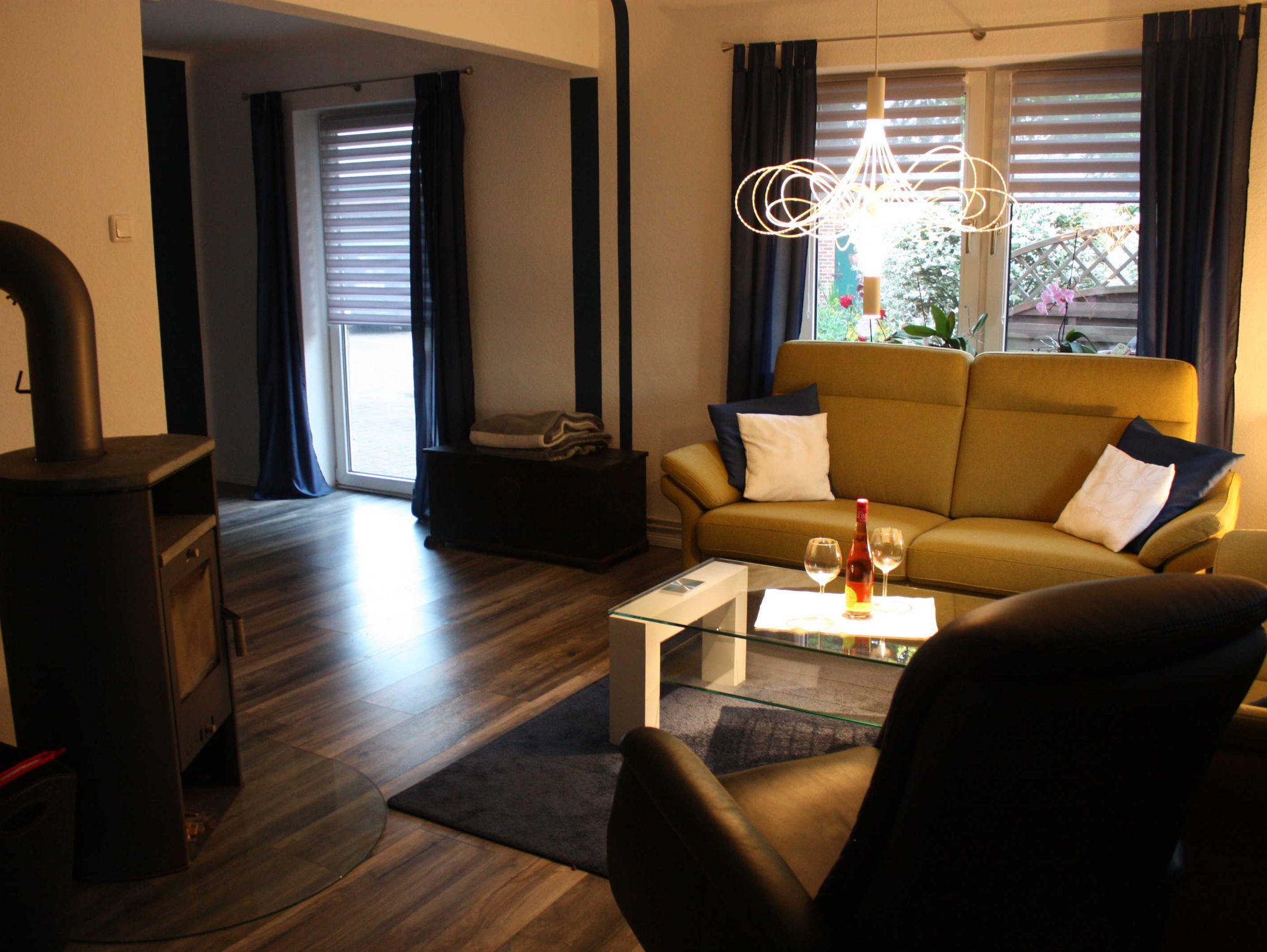 Urlaub irgendwo im Nirgendwo. Herzlich willkommen in unserem Ferienhaus Landblick. Genießen Sie einen individuellen Urlaub mit Familie, Freunden oder zu zweit. Unser liebevoll eingerichtetes und komplett renoviertes Ferienhaus bietet für bis zu 6 Personen auf 150 m² Wohnfläche und sonnigem Gartengrundstück Platz zum Verweilen. Die drei separaten Schlafzimmer sind mit Boxspringbetten ausgestattet, davon ein Schlafzimmer im Erdgeschoss mit Doppelbett, ein weiteres befindet sich im Oberschoss, wie auch das dritte mit getrennten Betten, in dem sich auch noch eine Sitzecke mit Fernseher zum Zurückziehen befindet. Das großzügige Wohnzimmer mit TV und Blu-Ray-Player wird durch den Kaminofen noch gemütlicher. Im Esszimmer ist viel Platz, um in schöner Runde zu essen oder einen Spieleabend zu genießen. Eine kleine Auswahl an Spielen ist vorhanden. Die Küche ist hochwertig ausgestattet und lässt mit Sitzecke, Herd (Ceranfeld), Backofen, Mikrowelle, Geschirrspüler, Kühl-Gefrierkombination, Kaffeemaschine, Toaster, SodaStream, Kinderhochstuhl und vielem mehr keine Wünsche offen. Das Tageslichtbad im Erdgeschoss ist mit großem Waschtisch und Schränken, WC und Eckbadewanne, Fön und Erste Hilfe-Kasten ausgestattet. Im Obergeschoss befindet sich ein Gäste-WC mit Dusche und kleinem Waschtisch. Im Abstellraum finden Sie eine Waschmaschine, einen Trockner und einen Wäscheständer vor. Wenn Sie nach langen Spaziergängen oder Fahrradtouren zurückkommen, dann wird sich Ihre Muskulatur über die Infrarotkabine im Obergeschoss sicher freuen. Ihr Ferienhaus verfügt über zwei Terrassen und ein schönes Gartenhaus mit großer Veranda, die mit Tisch und Sesseln zu entspannten Grillabenden mit dem Weber-Kohlegrill einlädt. Der große Garten ist 1,60 m hoch, fest und komplett eingezäunt. Auch Ihre Fahrräder bekommen bei uns ein Zuhause, dafür steht eine extra Box auf dem Grundstück und Ihr Fahrzeug hat Platz unter dem Carport. Holz für Ihren Kaminofen stellen wir Ihnen ebenso zur Verfügung wie ein kostenfreies WLAN. Wir bitten um Ihr Verständnis, dass das Rauchen im Haus nicht gestattet ist. Ihre liebe Fellnase ist auf Anfrage herzlich willkommen.