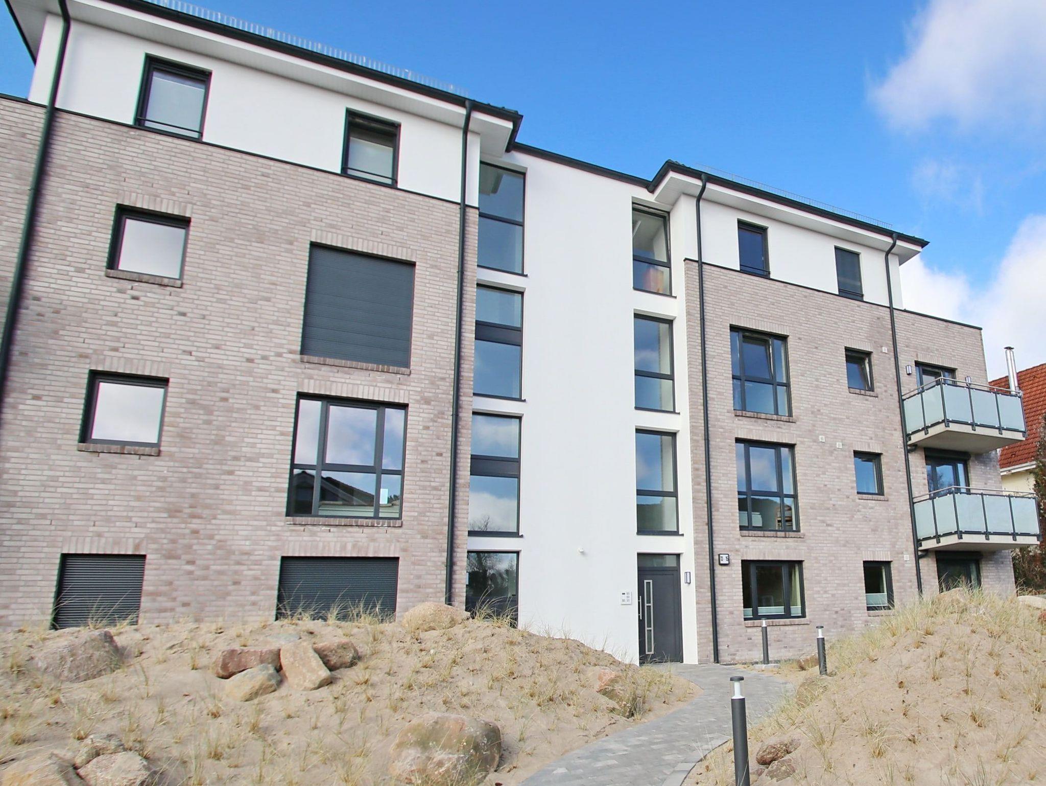 Moderne 3-Zimmer-Ferienwohnung in Lübeck-Travemünde, 180 m vom Strand, mit zwei Balkonen und Tiefgaragenstellplatz.