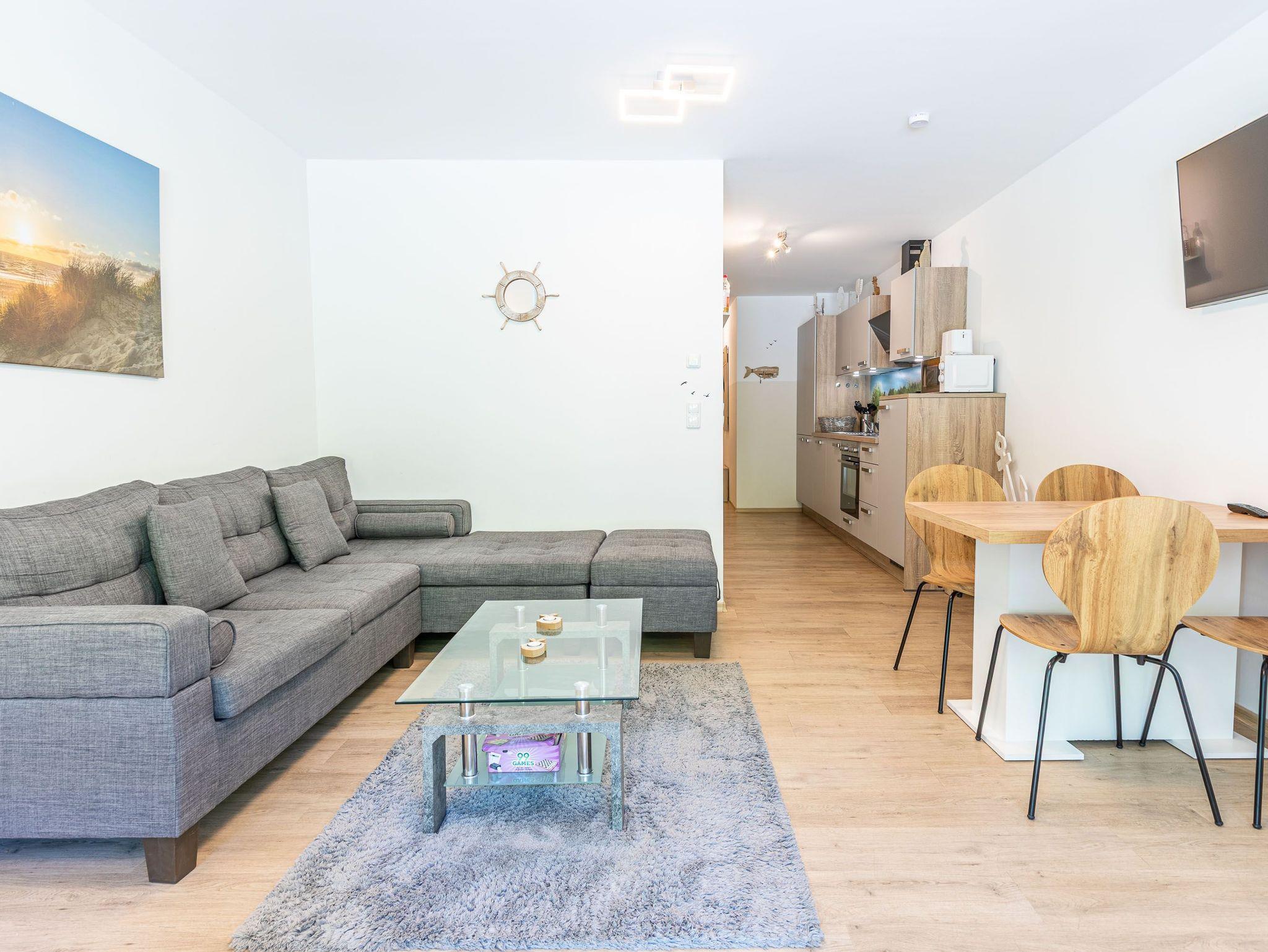 Moderne Ferienwohnung mit Terrasse und Strandkorb