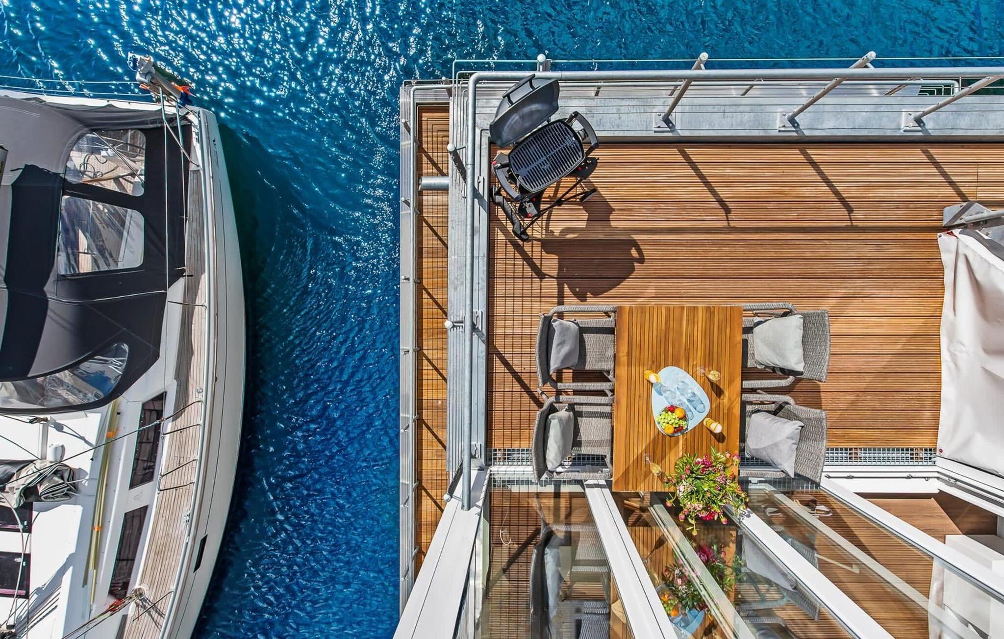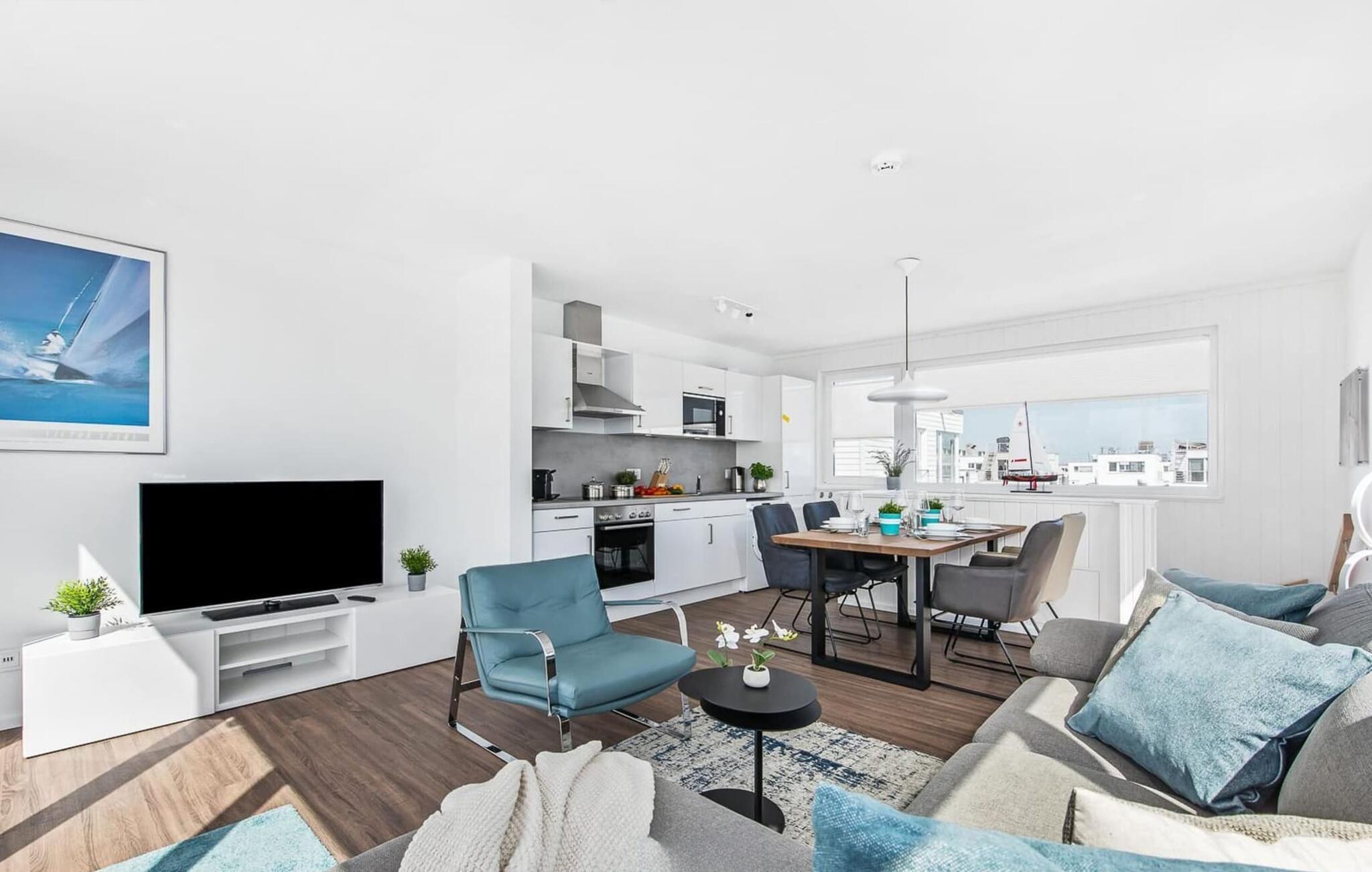Wasser, wohin das Auge reicht. Durch bodentiefe Panorama-Fensterfronten lässt sich die atemberaubende Kulisse genießen und von der Dachterrasse bieten sich spektakuläre 360-Grad-Ansichten auf Schlei, Ostsee und Marina. Die Ostsee ist nur eine Badeleiter entfernt und der Sandstrand des OstseeResorts ist in wenigen Gehminuten zu Fuß zu erreichen. In der dunklen Jahreszeit spenden Fußbodenheizung und Sauna wohligen Komfort, denn an Bord darf das Wellness-Programm nicht fehlen.