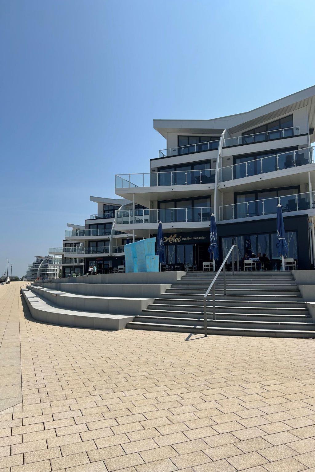 Den Abend kann man bestens an der gemütlichen Strandbar/ Restaurant "Ahoi" - von Steffen Henssler oder bei Jannys Eis verbringen oder sich von der norddeutschen Küche im Restaurants „Gut salzig“ verwöhnen zu lassen. All diese Highlights sind fußläufig zu erreichen.