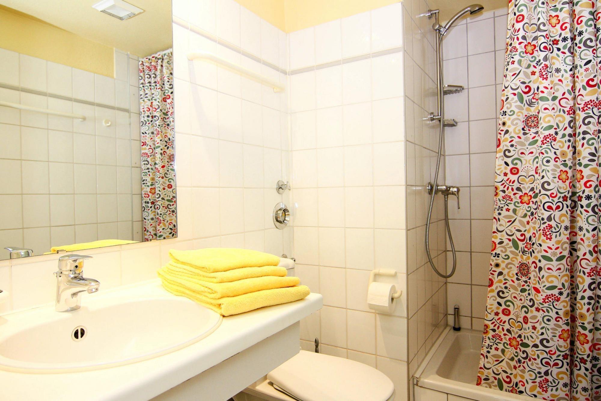 In der 1. Etage: (offene Küche(Esstisch, Kochplatte(2 Kochplatten, elektrisch), Toaster, Dunstabzugshaube, Kaffeemaschine, Mikrowelle, Kühlschrank), Wohn-/Schlafzimmer(Doppelschlafcouch, TV(Kabel), Radio), Schlafzimmer(Doppelbett), Badezimmer(Dusche, Waschbecken, Toilette)) Rezeption, Heizung, Aufzug, Hochstuhl, Babybett (kostenpflichtig), Handtücher/Bettwäsche (inklusive)