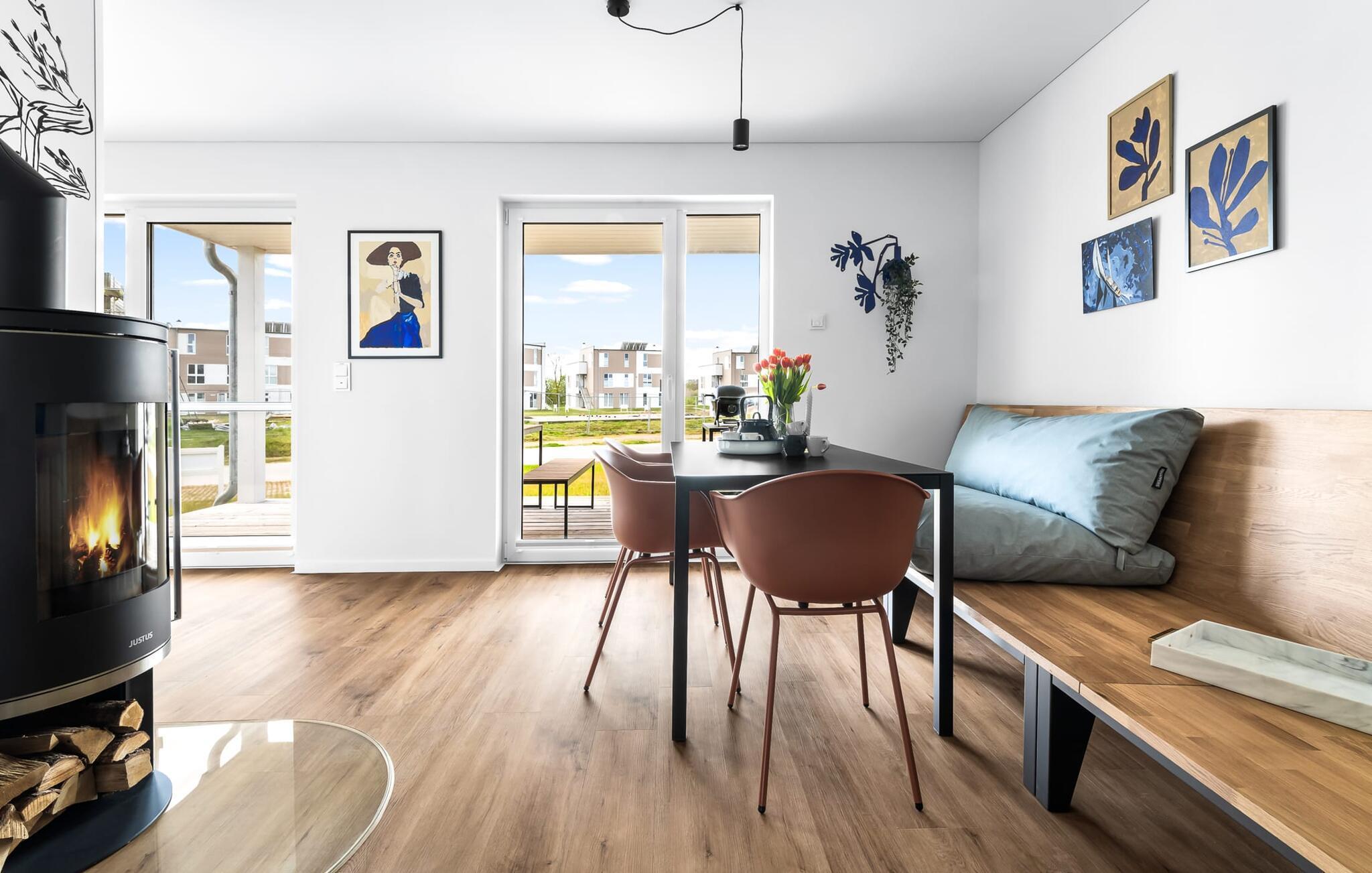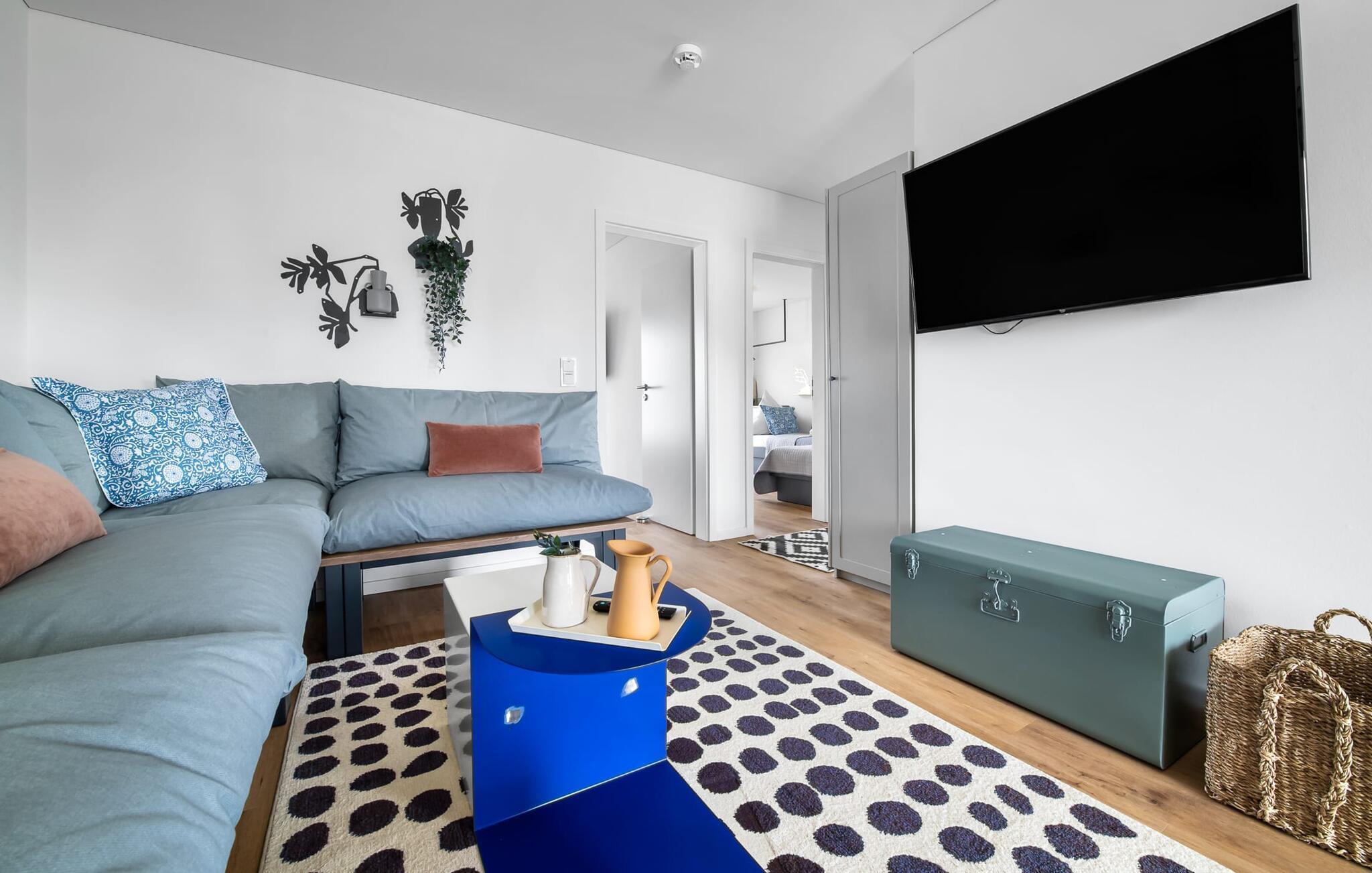 Unsere Designerwohnung zeichnet sich durch eine kunstvolle und farblich abgestimmte Innenausstattung sowie Liebe zum Detail aus.