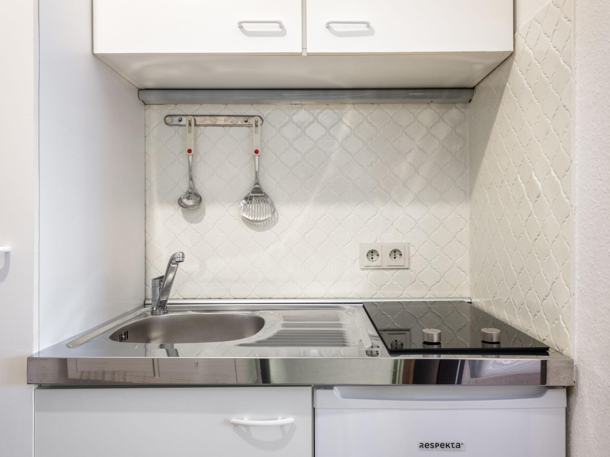 "Flora (B306)", 1-Zimmer-Wohnung 33 m2 im 3. Stock, Westlage. Wohn-/Schlafzimmer mit 2 Betten (90 cm, Länge 200 cm), Sat-TV (Flachbildschirm). Ausgang zum Balkon. Kochnische im Eingang (2 Kochplatten, Toaster, Wasserkocher, elektrische Kaffeemaschine). Bad/Dusche/WC. Balkonmöbel. Zur Verfügung: Internet (WLAN, gratis). Bitte beachten: Nichtraucher-Unterkunft. Maximal 1 Haustier/Hund erlaubt. Rauchmelder.