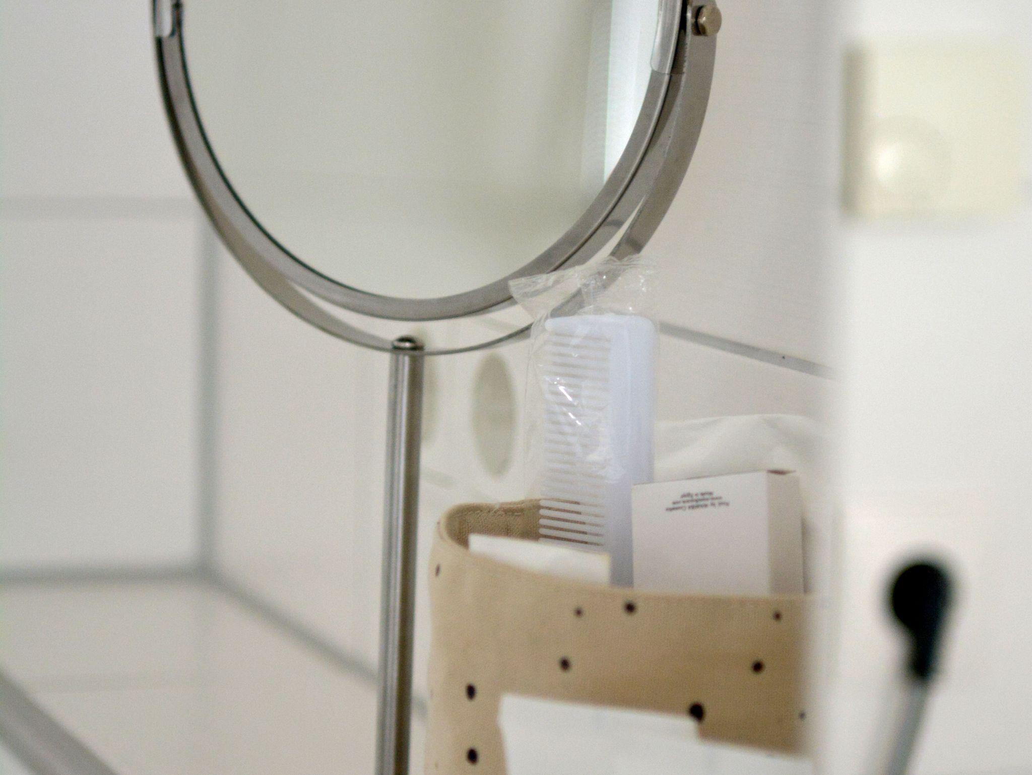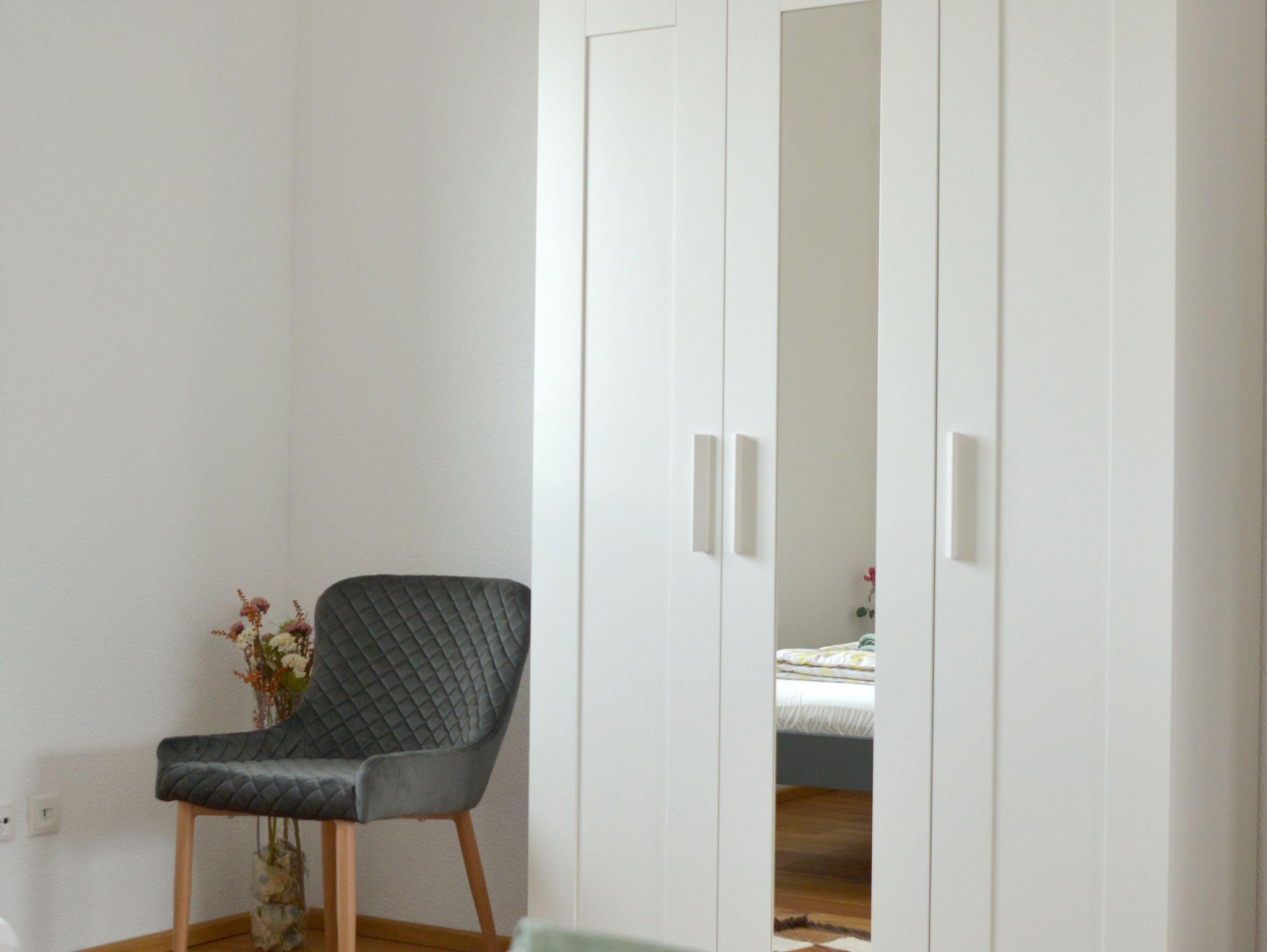 Schlafzimmer: 2 Einzelbetten, können nebeneinander gestellt werden, ein Nachttisch mit Lampe, auch hier elektrische Jalousien , ein Kleiderschrank mit Kleiderbügeln, Bügelbrett und Bügeleisen.