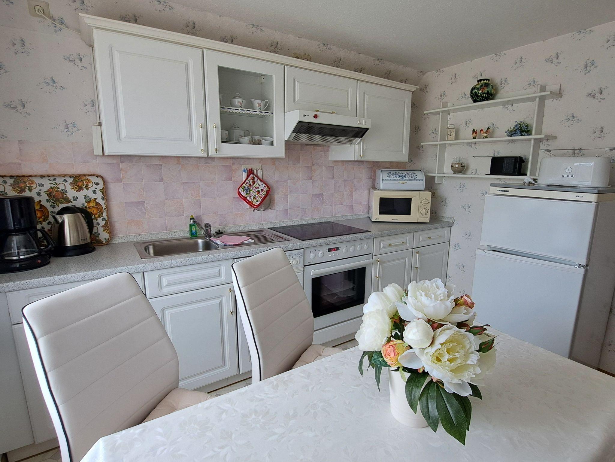 Die gemütlich 75qm große Ferienwohnung befindet sich in der ersten Etage eines Doppelhauses. Sie verfügt über einen Wohnraum mit Radio und TV, zwei separate Schlafräume, eine modern ausgestattete Küche, sowie Dusche/WC. Eine Terrasse in Süd/Westlage mit Gartenmöbeln lädt bei Sonnenschein zum Verweilen ein. Die Erstausstattung der Bettwäsche stellt der Vermieter Ihnen kostenlos zur Verfügung, bitte bringen Sie die Handtücher mit, ein PKW-Stellplatz ist auf dem Grundstück . Bitte erst ab 15.00 Uhr anreisen.