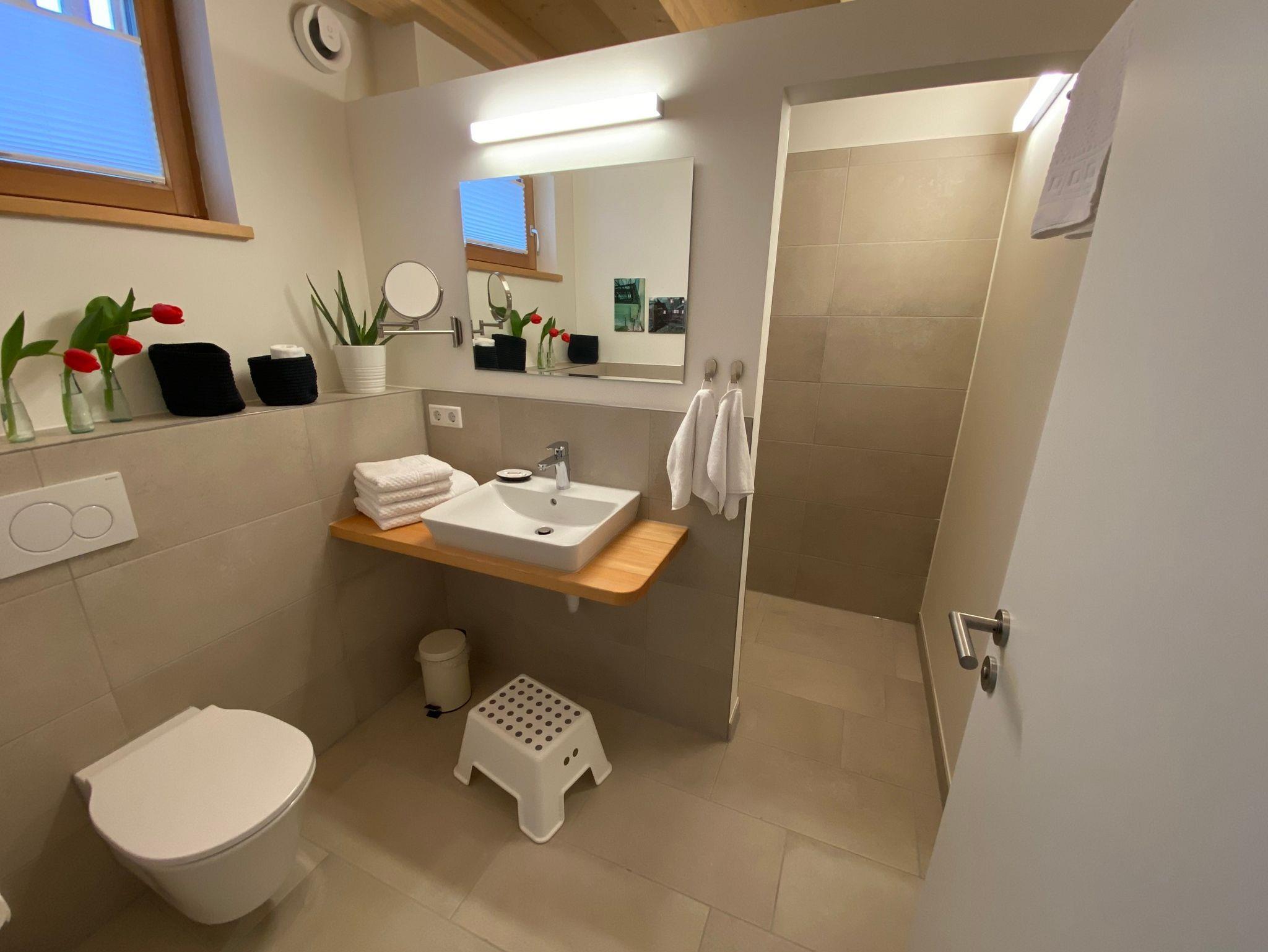Die Ferienwohnung befindet sich in einem Holzneubau. Im Erdgeschoss befinden sich eine offene Küche, ein Esstisch mit 4 Stühlen, Sofa mit Schlaffunktion, Smart-TV und das Badezimmer mit WC und ebenerdiger Dusche.
