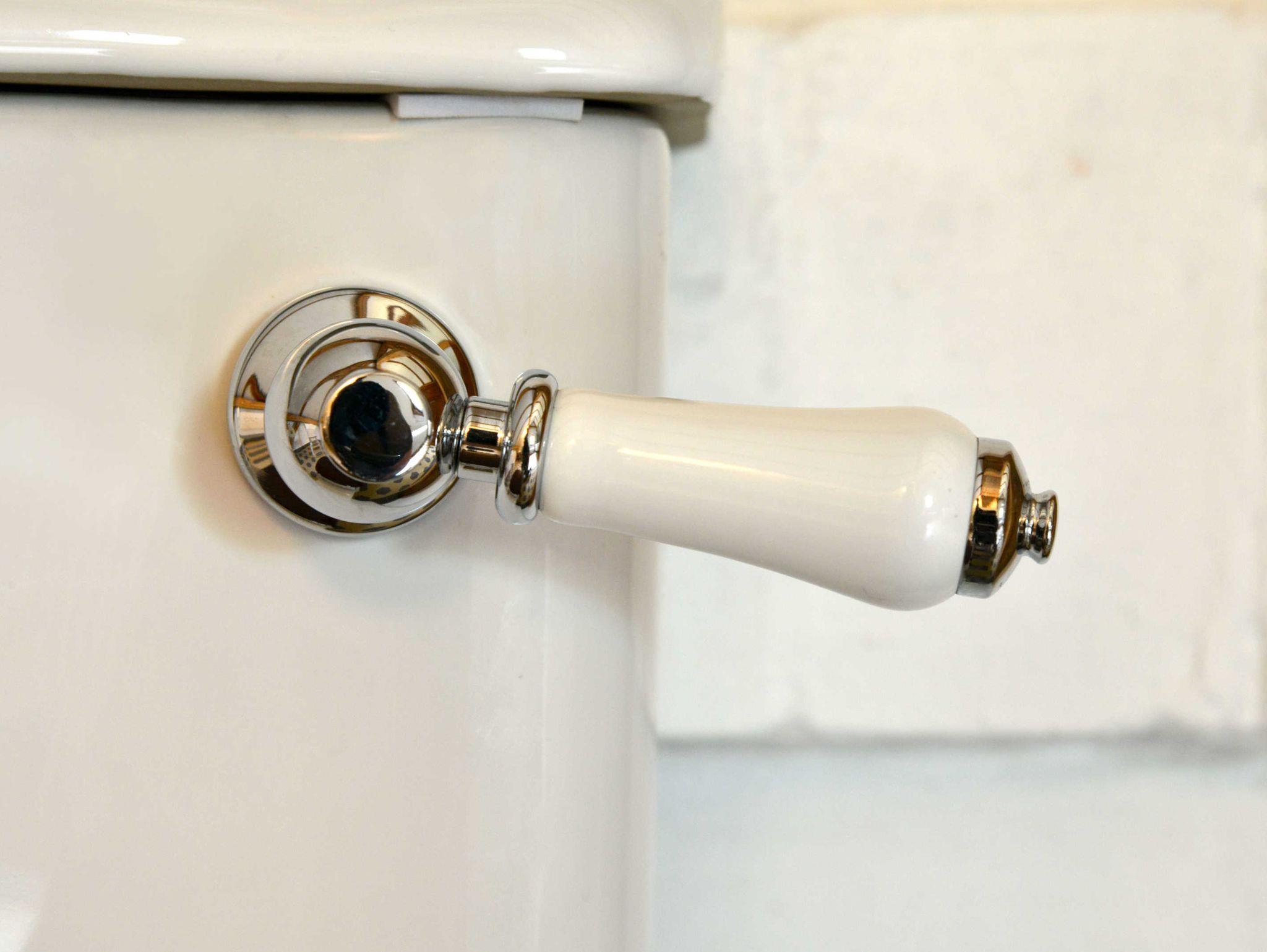 Das Bad, auch der Gründerzeit nachempfunden, besticht mit edler Keramik und Armaturen, und einer freistehenden Badewanne.