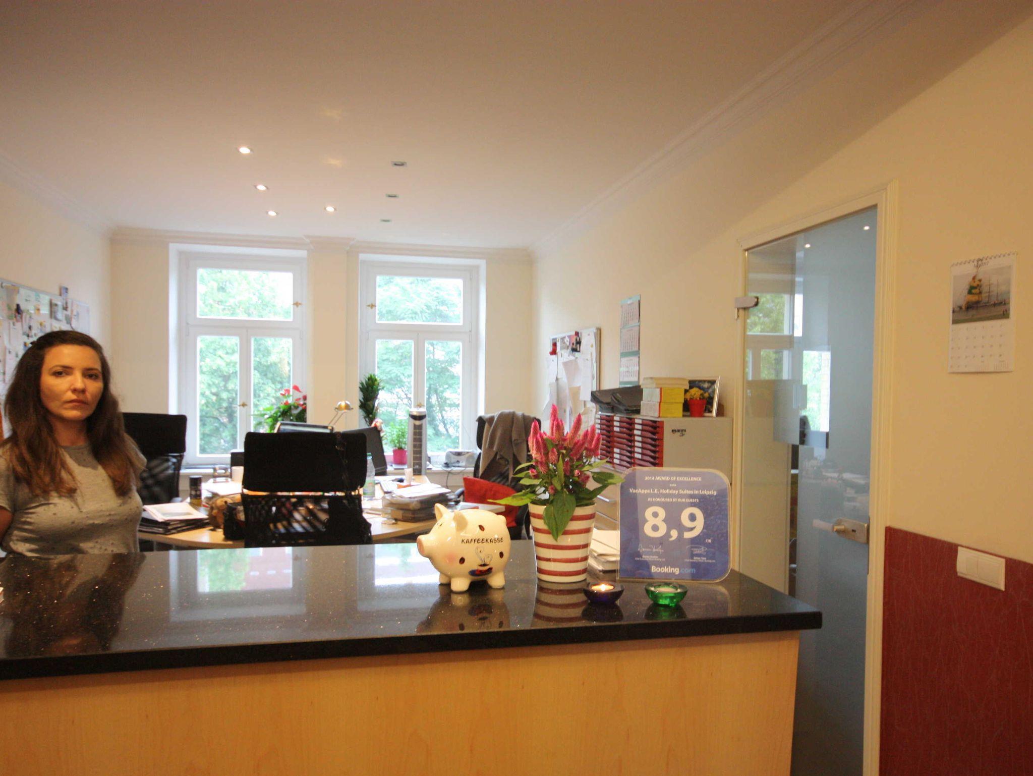 Unser unter Denkmalschutz stehendes Gründerzeithaus wurde 1891 gebaut und 1993 komplett saniert. Die Apartments wurden 2013 bis 2018 renoviert und liegen nur knapp 2 km vom Stadtzentrum entfernt. Alle Apartments verfügen über eine Küche(-nzeile), Schlafzimmer, Wohnzimmer und ein separates Bad, teilweise mit Badewanne und Waschmaschine in der Wohnung. Die Wohnungen bieten Platz für bis zu 5 Personen. Fussläufig sind ein Einkaufsmarkt (mo-sa 6-22 Uhr) sowie diverse Geschäfte im Reudnitz-Center erreichbar. Restaurants finden Sie ebenfalls in der direkten Umgebung. Die Wohnungen liegen in Hochpaterre bis zum 4. Stock des Hauses. Bitte beachten Sie, dass unser Haus bauzeitbedingt über keinen Aufzug verfügt. Unsere Rezeption im 1. OG ist Mo-Fr von 14-17 Uhr für Sie geöffnet. Gerne beantworten wir Ihnen Fragen und sind bei der Planung Ihrer Ausflüge behilflich. Alle Wohnungen verfügen über WLAN, das kostenfrei genutzt werden kann. Ihren Pkw können Sie kostenfrei auf unserem hauseigenen, eingezäunten Parkplatz abstellen. Straßenbahnhaltestelle in 150 Meter Entfernung. Bei Anreisen nach 17 Uhr oder am Wochenende rufen Sie uns bitte zur Terminabstimmung an. Ihr Jürgen Bodenstab mit Familie und Team.