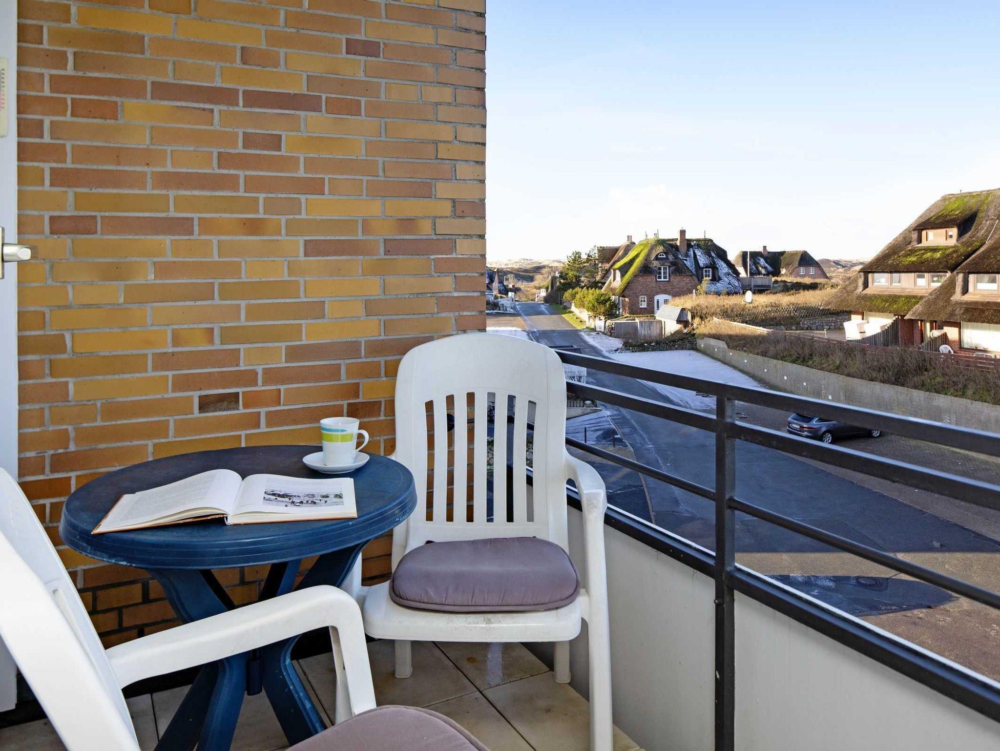 Modernes, helles Apartment Lee in List auf Sylt mit Panoramablick auf die Dünen und Balkon.