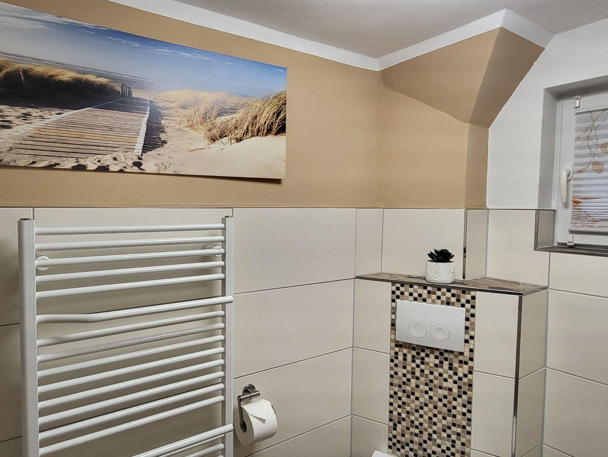 Die modern eingerichtete Nichtraucher-Ferienwohnung wurde 2020 renoviert und befindet sich im Souterrain im Wohnhaus des Vermieters. Sie ist hell und freundlich und verfügt mit ihren 60 m² über eine Küche, einen Wohnraum mit Essecke und Schlafcouch, einen Schlafraum mit einem Doppelbett und eine Sitzecke mit Grillmöglichkeit im Garten. Der Parkplatz befindet sich am Haus. Die Wohnung hat einen separaten Eingang. Die Erstausstattung Bettwäsche ist inklusive, Handtücher bringen Sie bitte selbst mit. Bis zum Strand sind es ca. 20 Minuten zu Fuß. Haustiere sind bei uns nicht erlaubt.