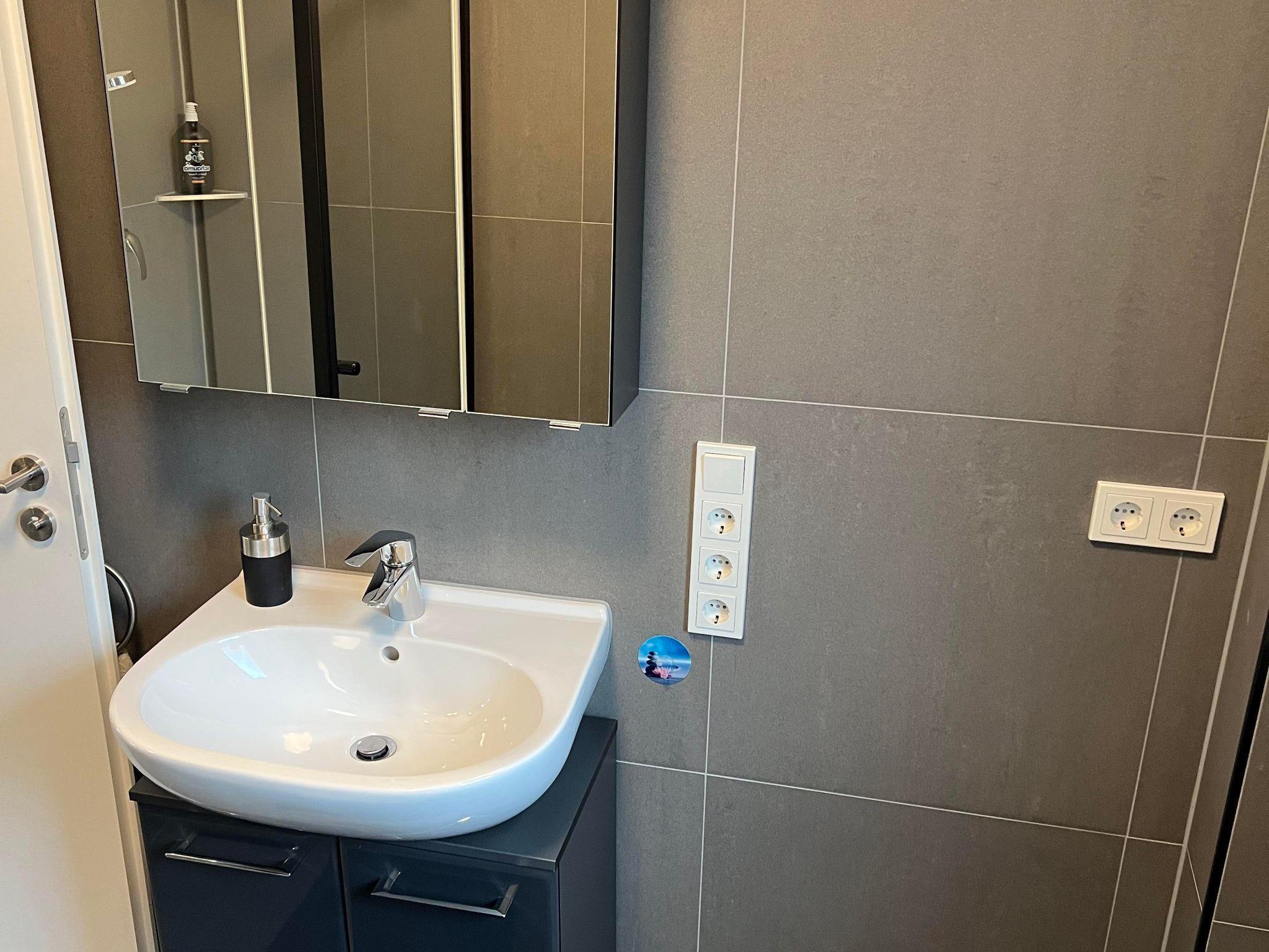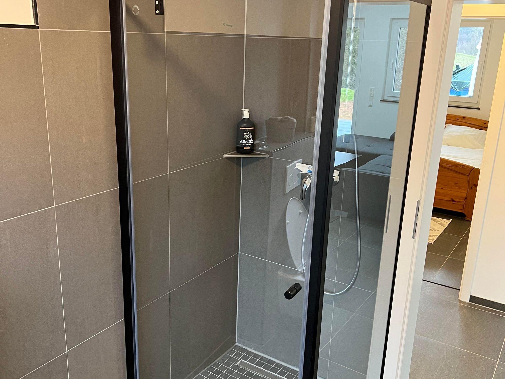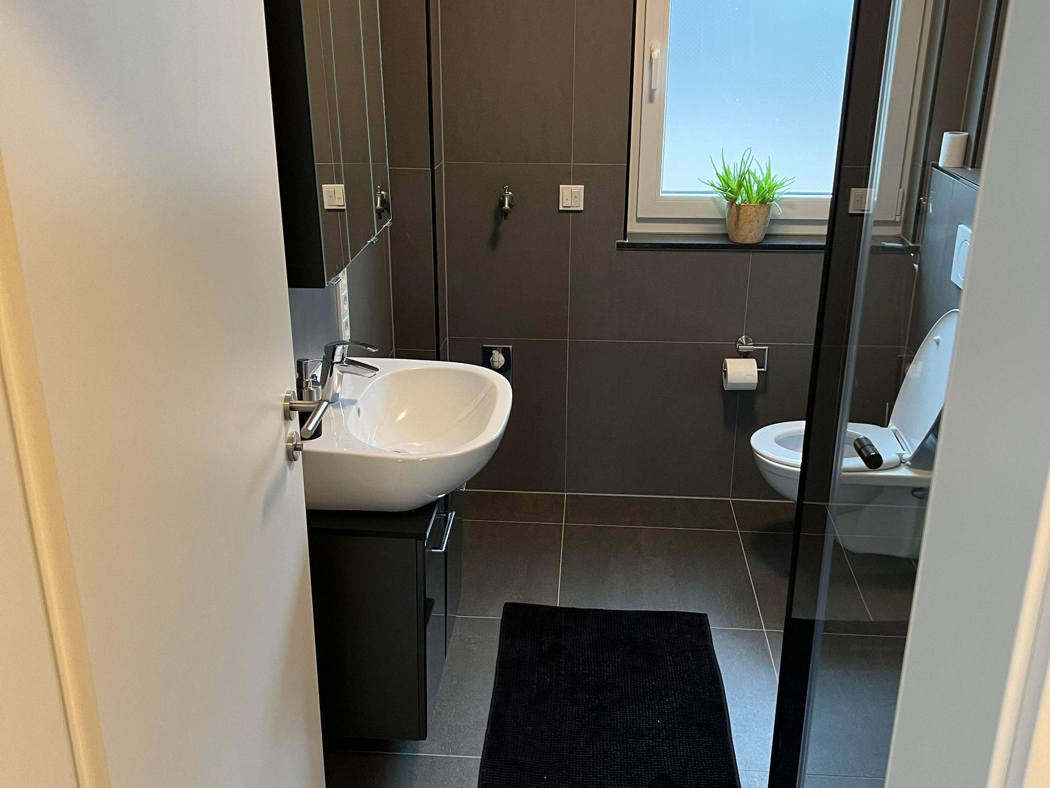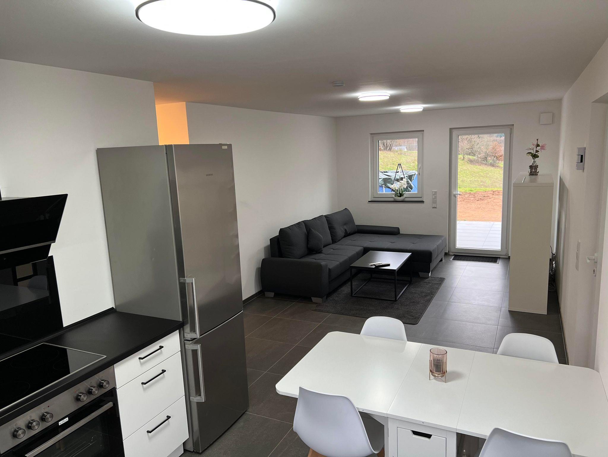 Hochwertiger Neubau. Komplett ausgestattete und zum Wohnzimmer offene Küche. Die Küche verfügt auch über eine Mikrowelle, eine Spülmaschine, ein Wasserkocher, einen Toaster und eine Kaffeemaschine. Der Wohnraum ist mit einer Essecke, einem Flachbildfernseher mit Satellitenkanälen und Mehrkanal-Fernsehen sowie ein Schlafsofa ausgestattet. Schönes Schlafzimmer mit Doppelbett, Terrasse mit Sitzecke und Blick ins Grüne. WLAN ist in dem gesamten Apartment kostenlos verfügbar. Das Badezimmer ist mit Dusche und WC ausgestattet.