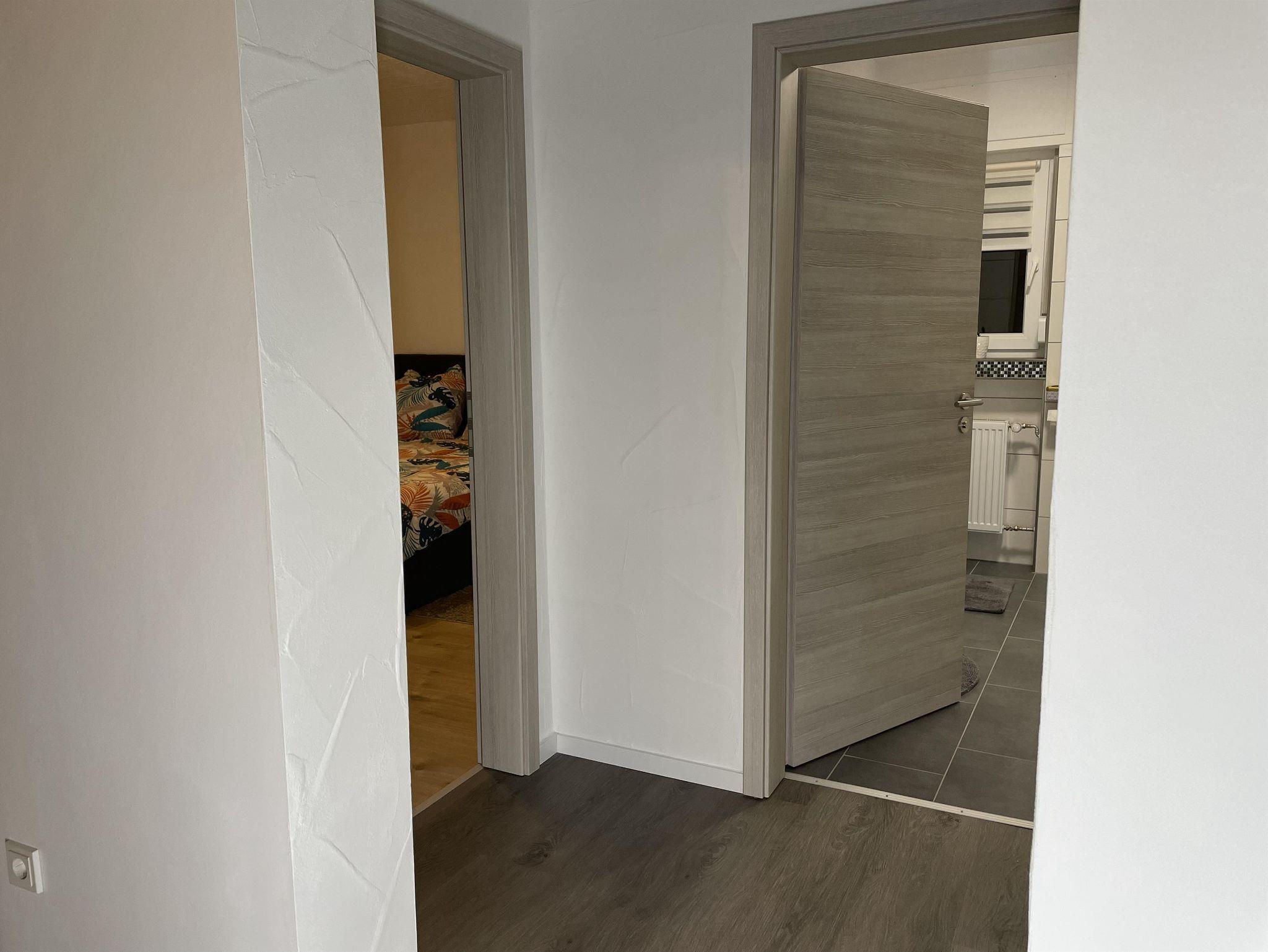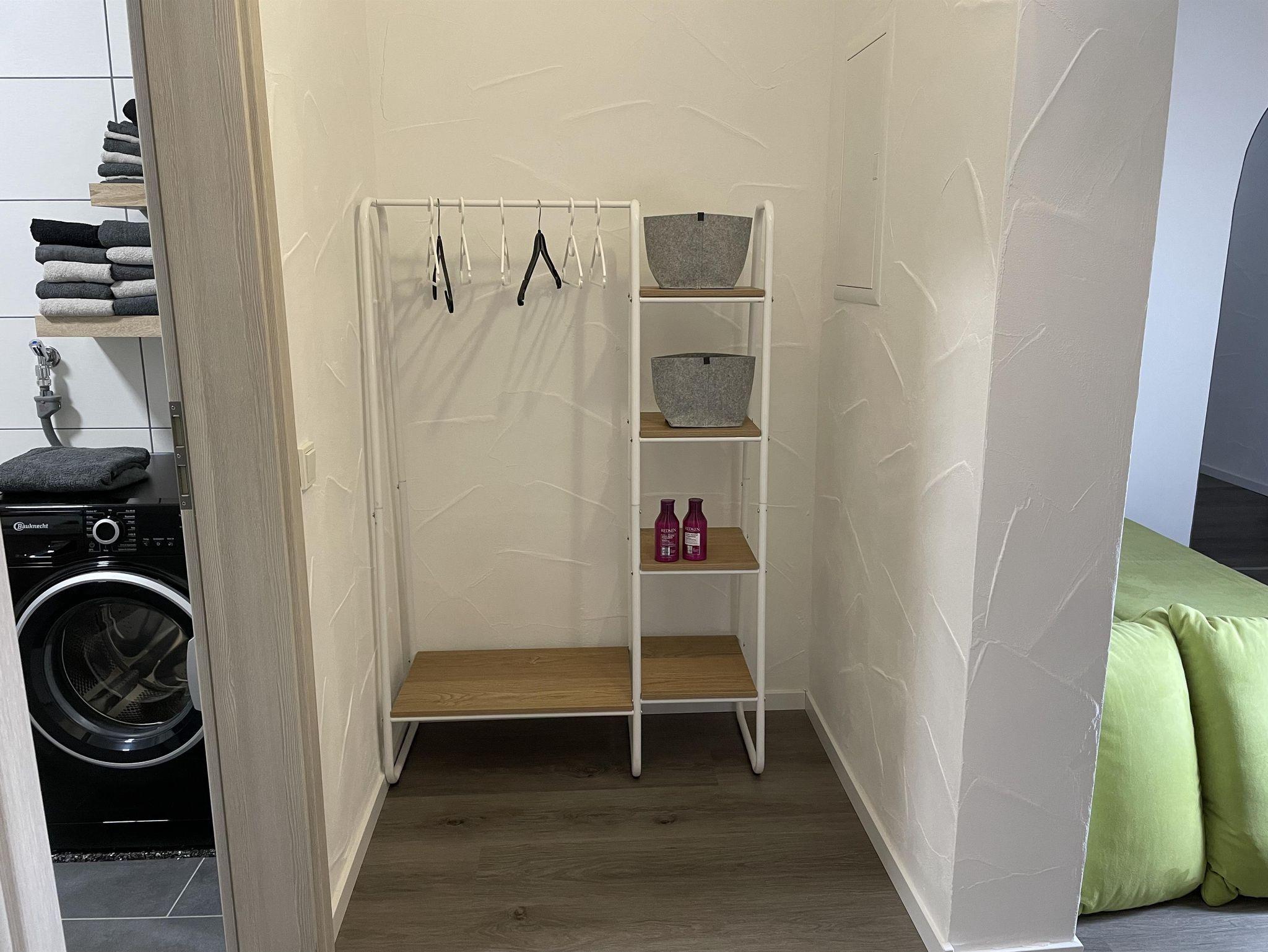 Zwischen Bad, Schlafzimmer und Wohnzimmer befindet sich der kleine Flur mit Garderobe für Ihre Jacken, Schuhe, Mützen, etc.
