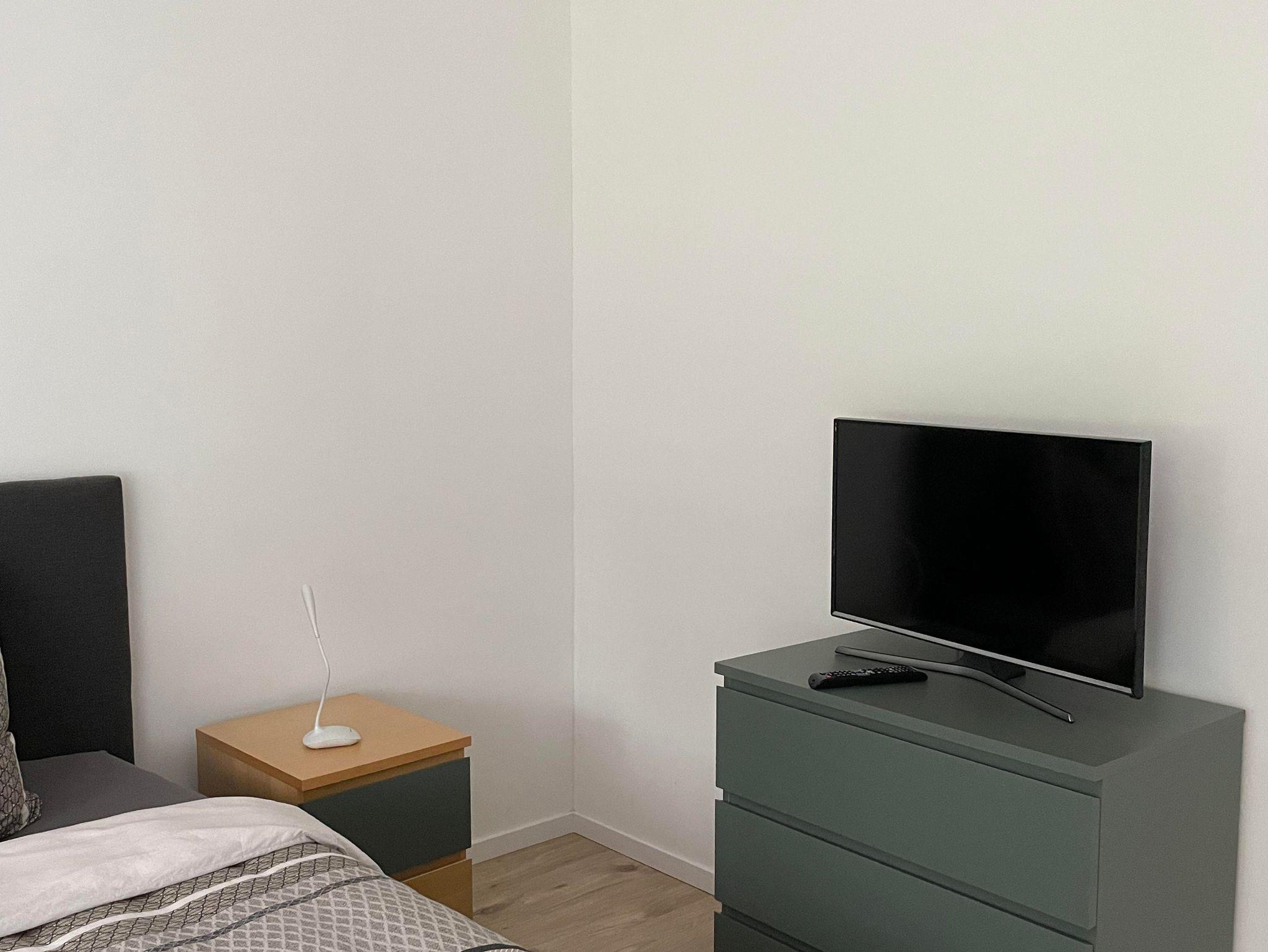 Das Schlafzimmer ist eingerichtet mit einem Doppelbett, einem Kleiderschrank, Nachttischen und 1 Kommode. Der Anschluss eines weiteren TV ist hier vorgerichtet. Bettdecken, Kopfkissen und Bettwäsche sind im Preis enthalten.