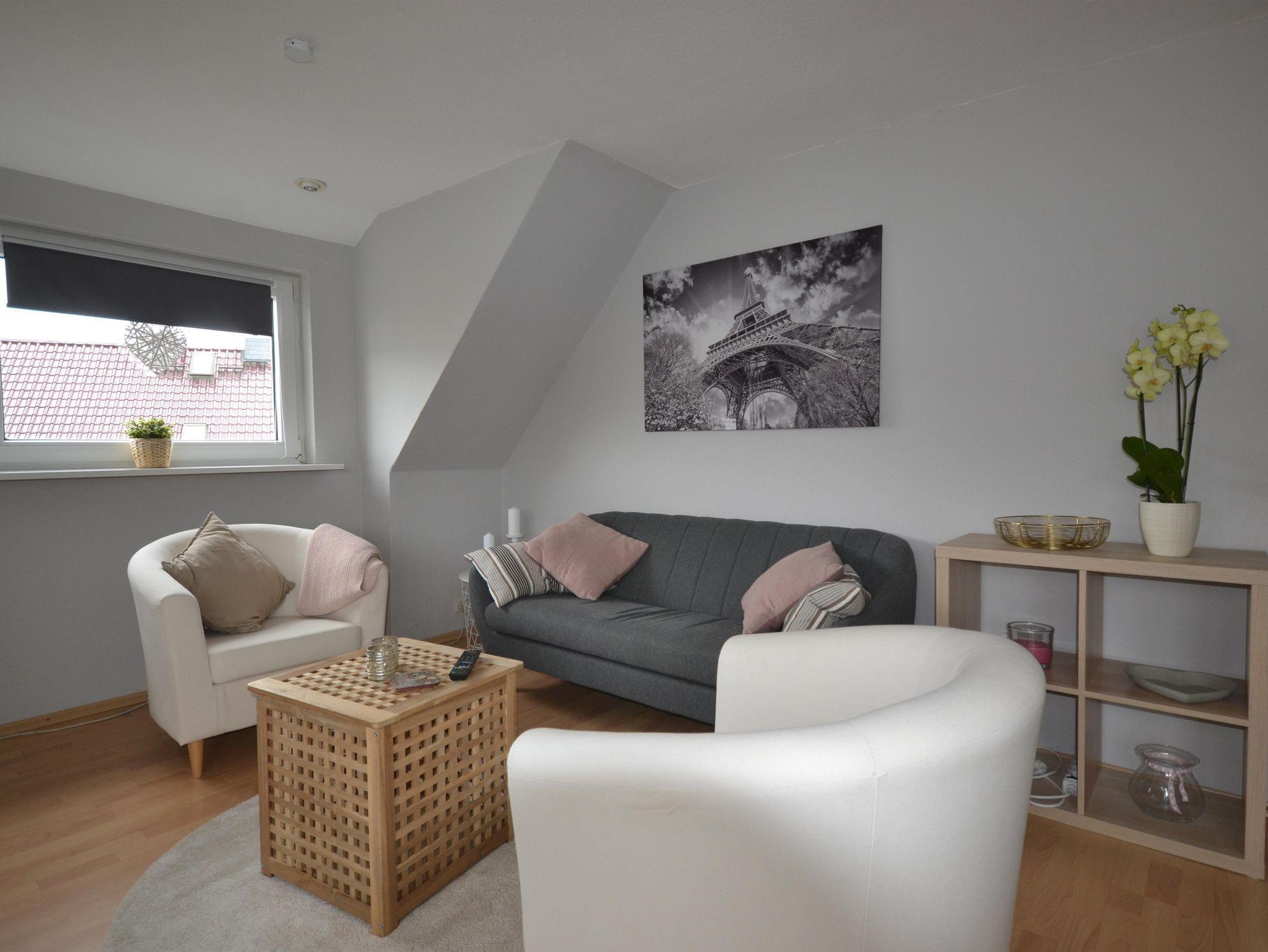 Sonnige Ferienwohnung für zwei Personen mit separatem Schlafzimmer, Küche und modernem Duschbad. Die Wohnung befindet sich im OG.