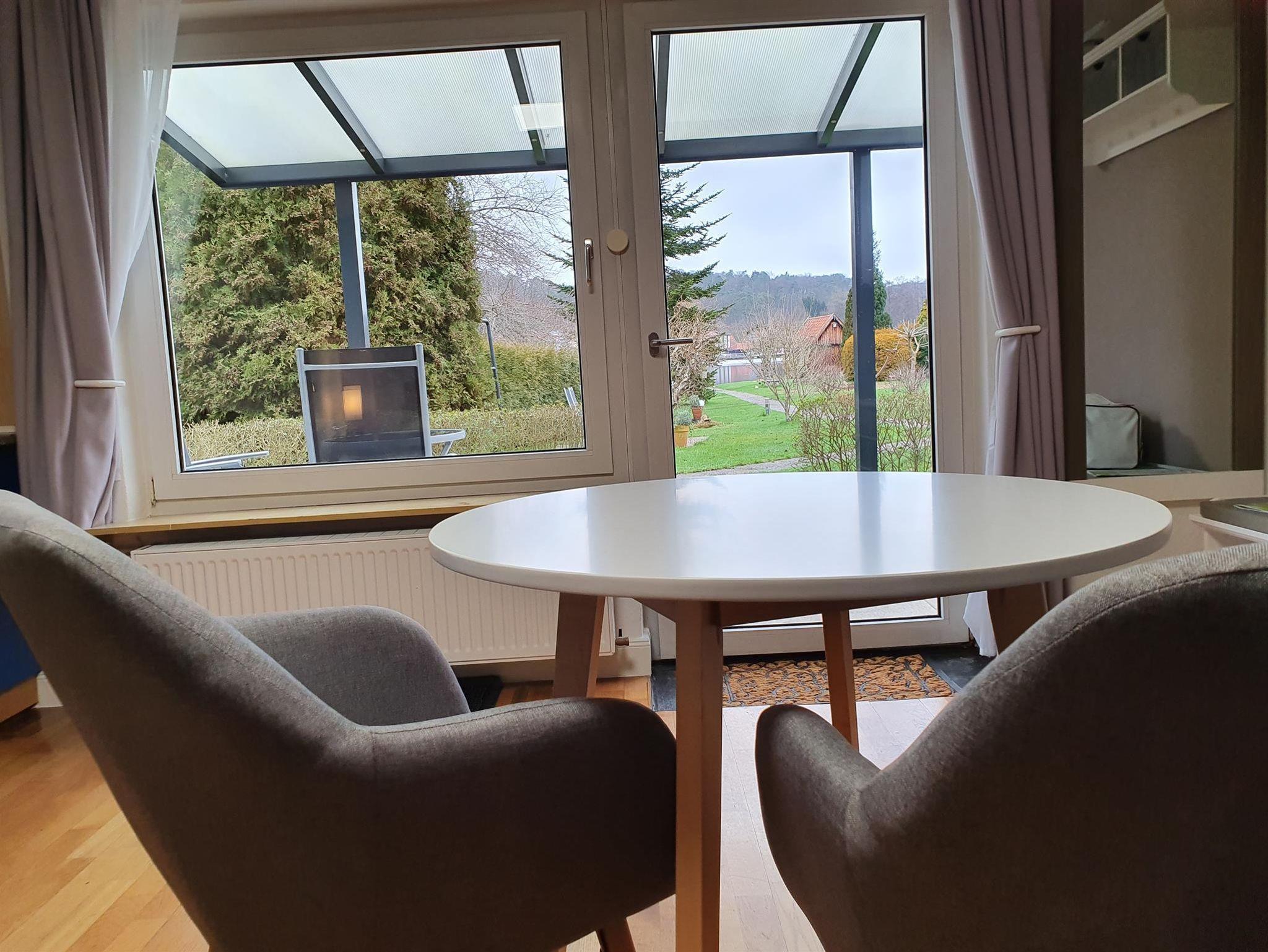 Ruhiges Zimmer mit Balkon oder Terasse. Zum Teil mit Pantryküche und Küchenausstattung. Blick auf den Schulsee oder den Mühlenbach.