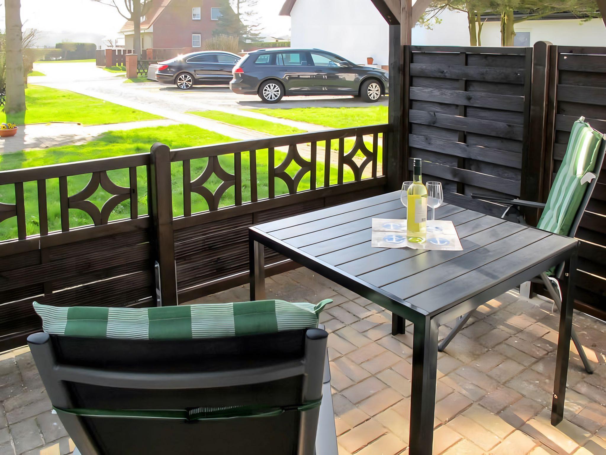 Die zur Ferienwohnung gehörende Terrasse mit Gartenmöbeln ist der perfekte Ort, um einen wunderschönen Urlaubstag bei einem Glas Wein ausklingen zu lassen ? genießen Sie die Ruhe und Schönheit der Umgebung!