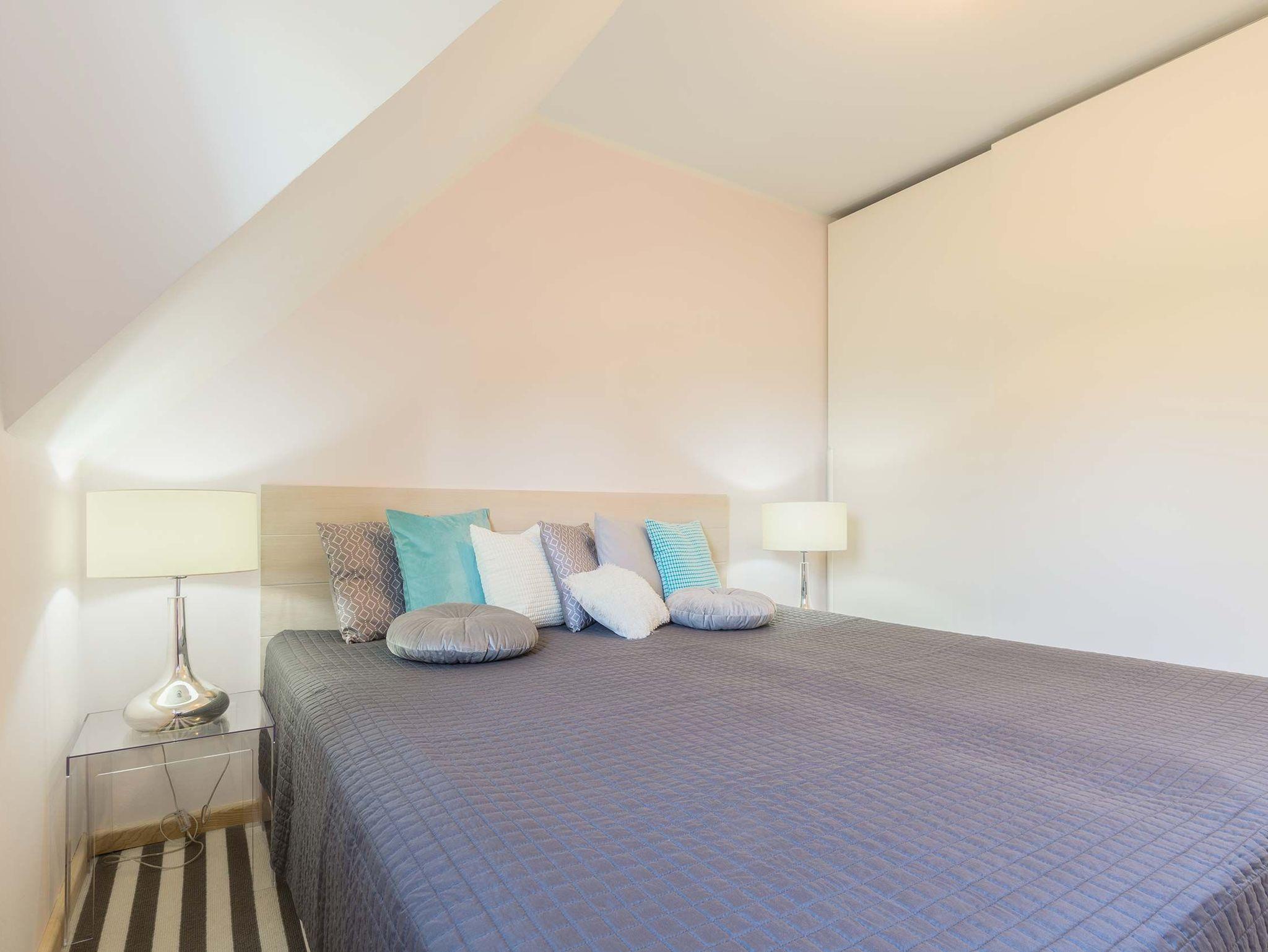 Auf dieser Ebene, im Obergeschoss, befinden sich zwei separate Schlafzimmer. Ein Schlafzimmer ist mit einem Doppelbett und zusätzlichen Fernseher und das andere mit einem Tandembett und einen weiteren Fernseher ausgestattet. Das dritte Schlafzimmer mit Doppelbett befindet sich im Dachgeschoss. Ein Wannenbad und das Duschbad im Spitzboden sind grosszügig ausgestattet.