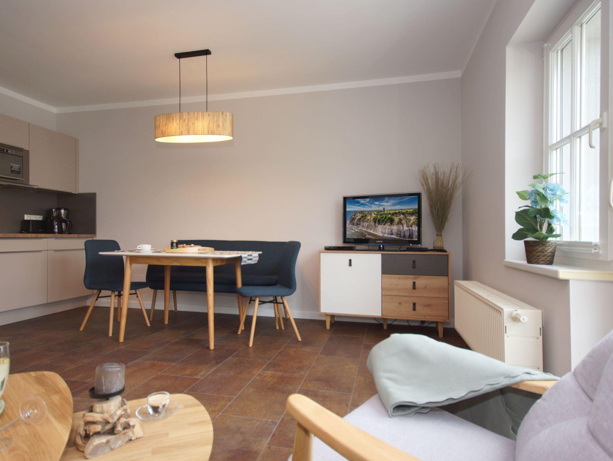 Modern eingerichtete Ferienwohnung mit Seeblick auf der Halbinsel Mönchgut in Alt Reddevitz, ideal für erholsame Tage am Bodden.
