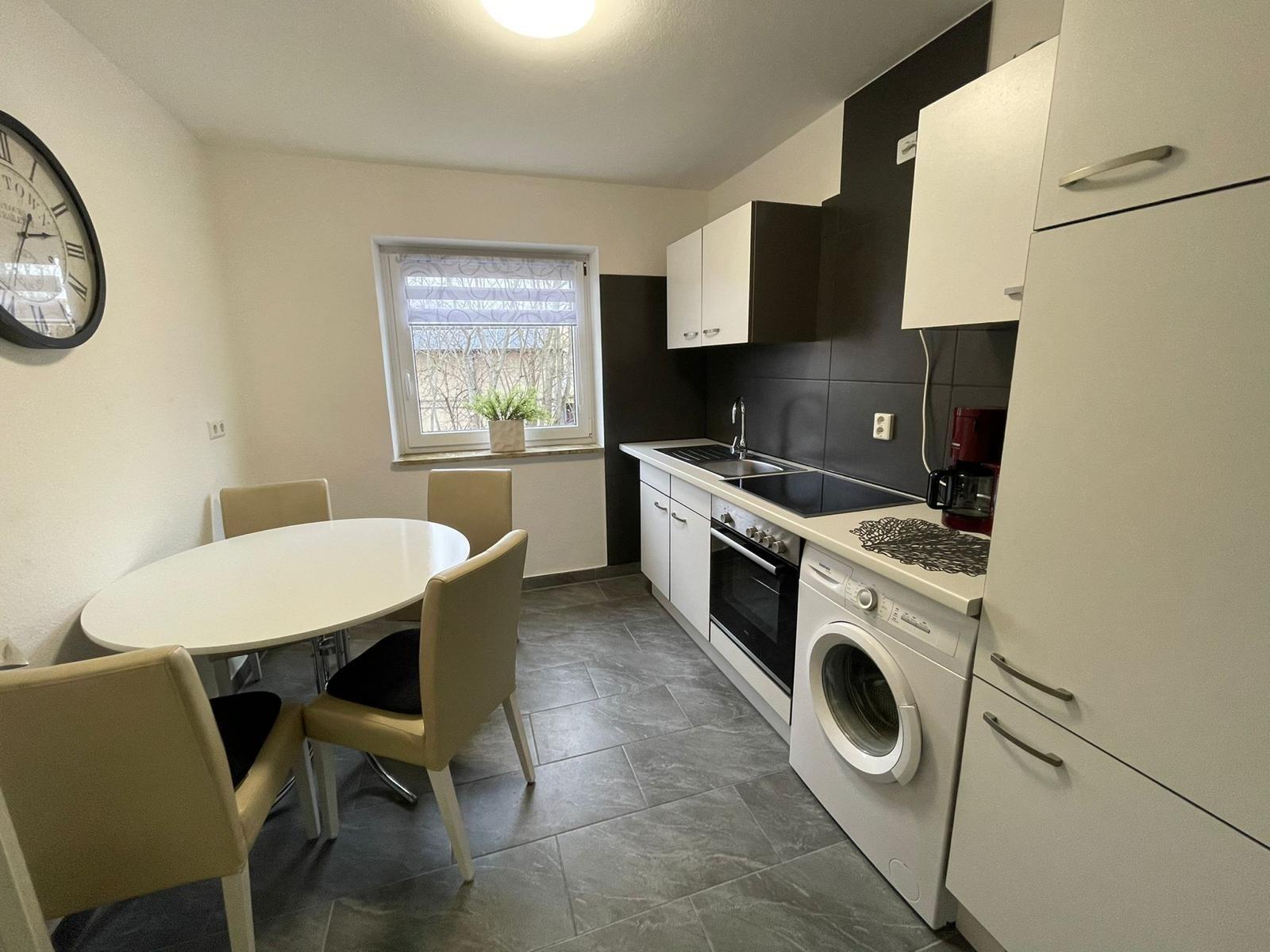 Die Küche ist voll ausgestattet bietet Platz für einen Esstisch.