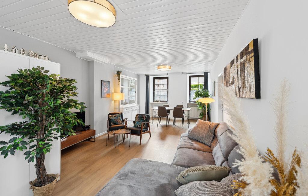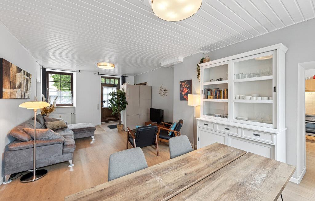 Entdecken Sie die fantastischen Naturgebiete der Eifel bei einem Aufenthalt in dieser gemütlichen Ferienwohnung. Sie beeindruckt durch ihr stilvolles und modernes Design. Bereiten Sie morgens ein leichtes Frühstück zu und genießen Sie es am Esstisch im lichtdurchfluteten Wohnbereich. Dieser ist mit komfortablen Möbeln ausgestattet. Schauen Sie hier einen guten Film oder entspannen Sie bei der Lektüre eines spannenden Buches. Die liebevoll ausgewählte Dekoration und die Zimmerpflanzen schaffen eine angenehm heimelige Atmosphäre.