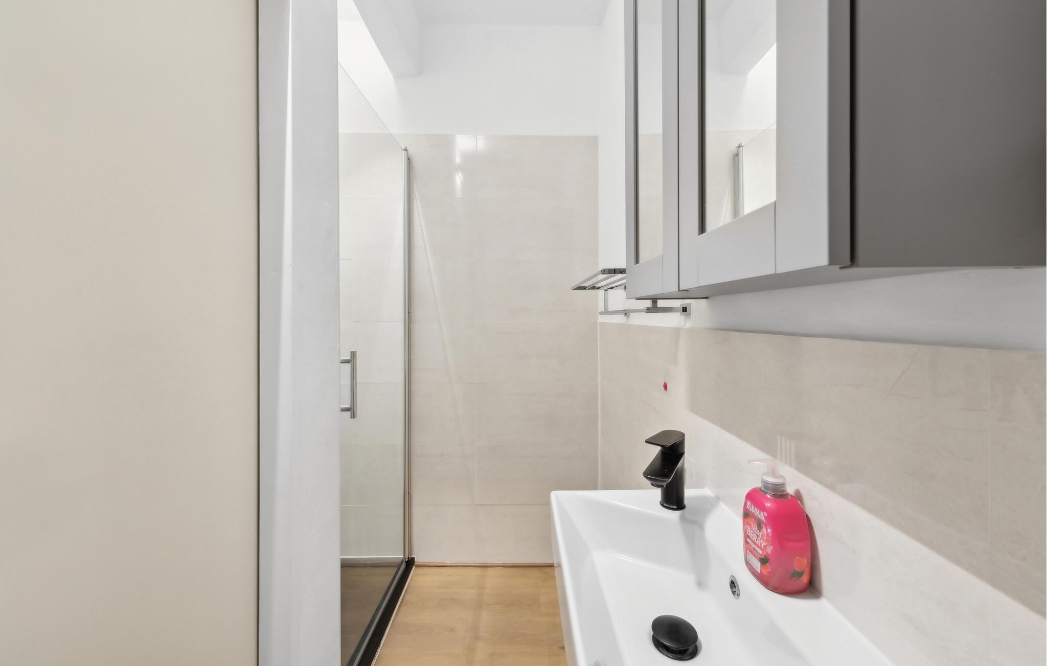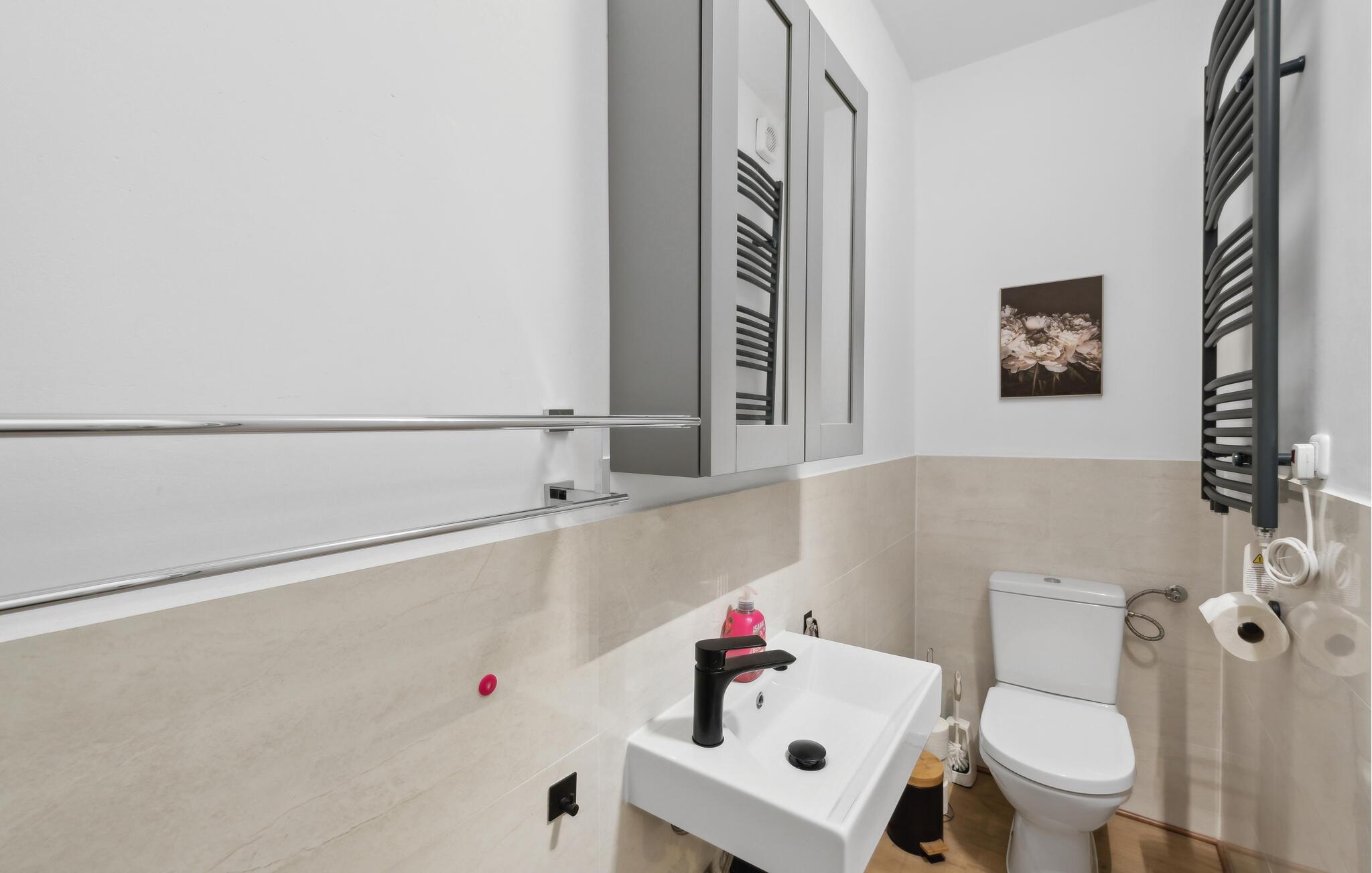 - WC mit warmem und kaltem Wasser, Dusche
