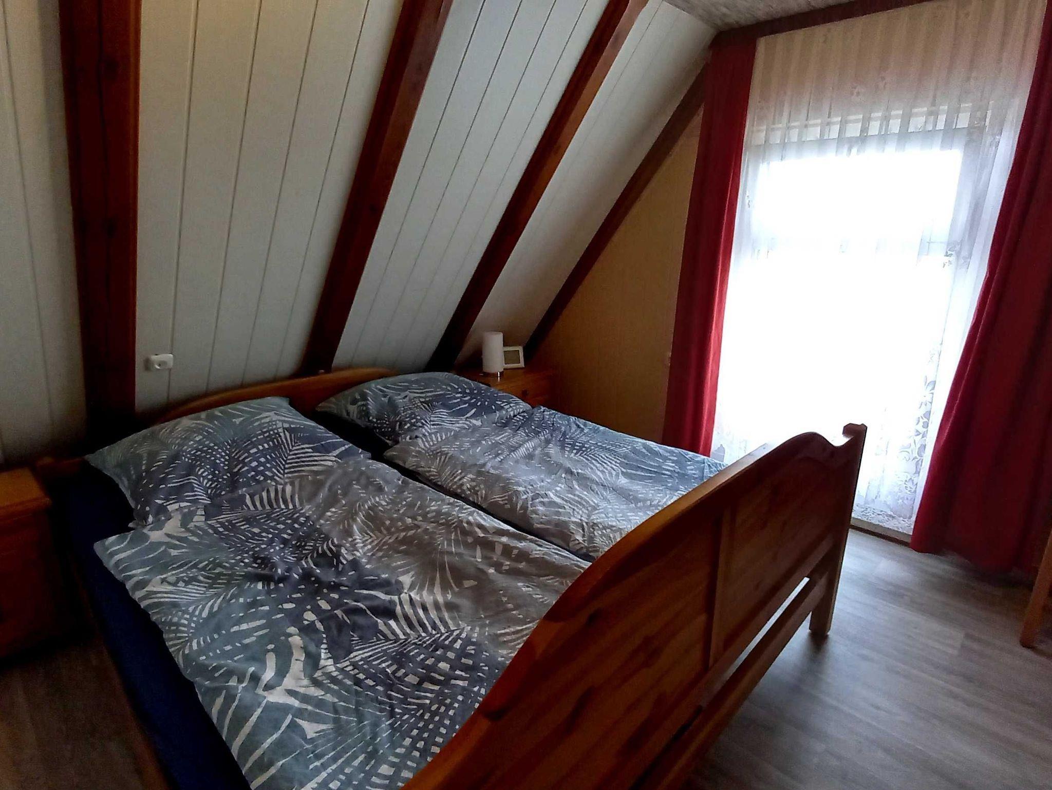 • Schlafzimmer mit Doppelbett und Kommode (Kinder-Reisebett und Kinderhochstuhl vorhanden)