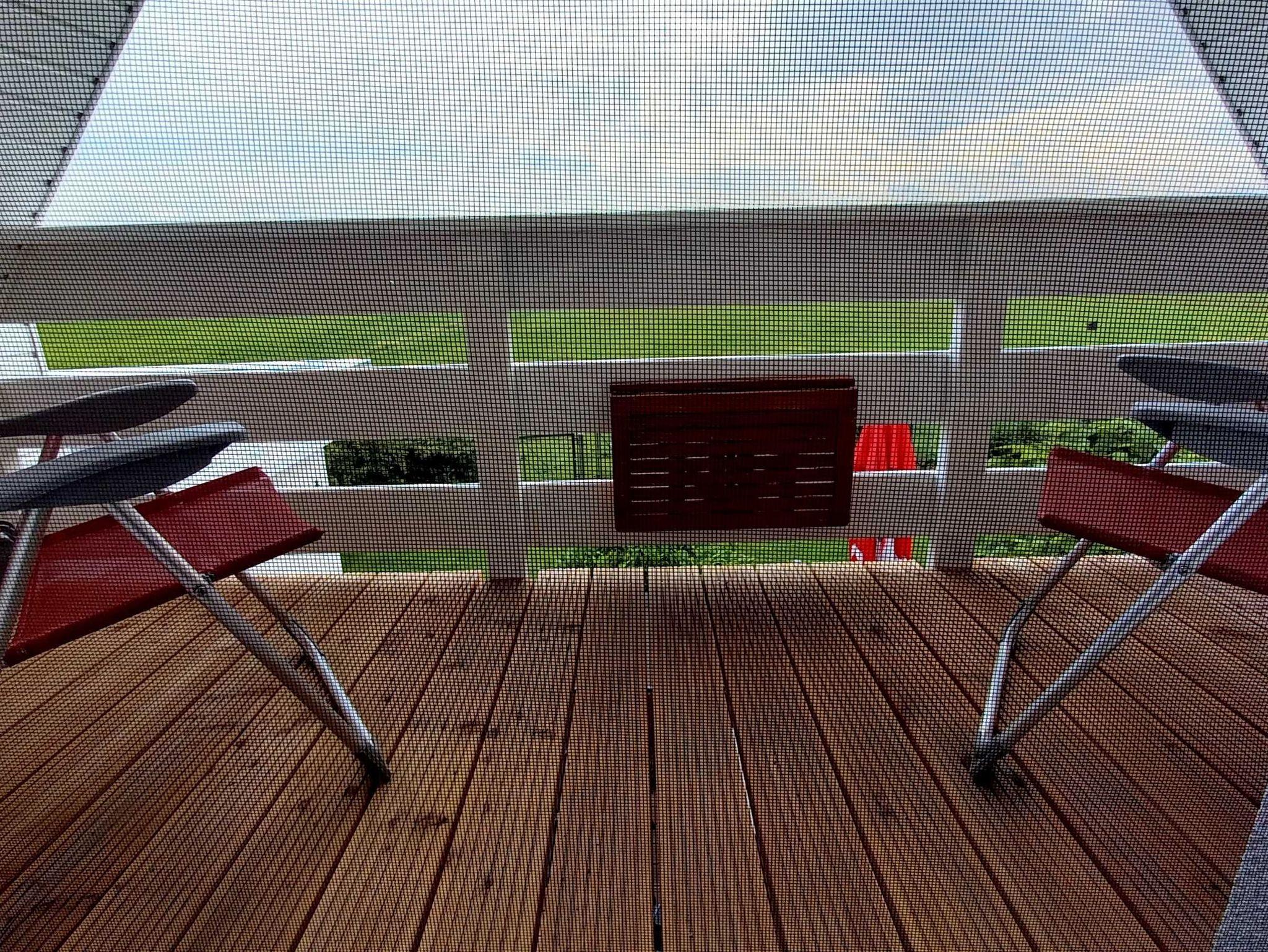 - 1 großer Balkon inkl. Sitzecke & Radio (extra Kühlschrank) mit Blick zum See