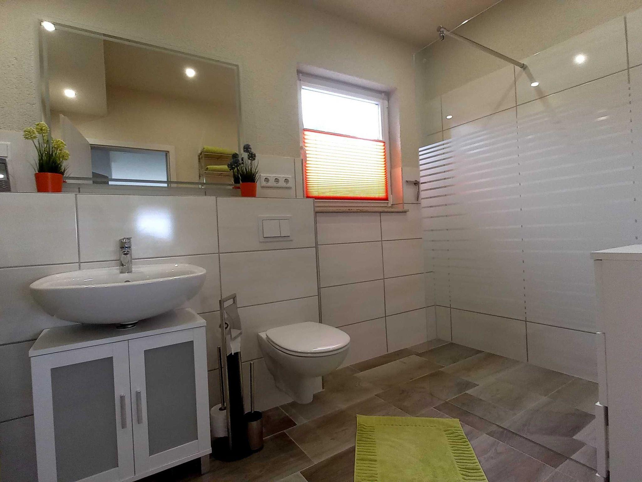 • Bad mit ebenerdiger Dusche, WC und Föhn (inkl. Handtücher)