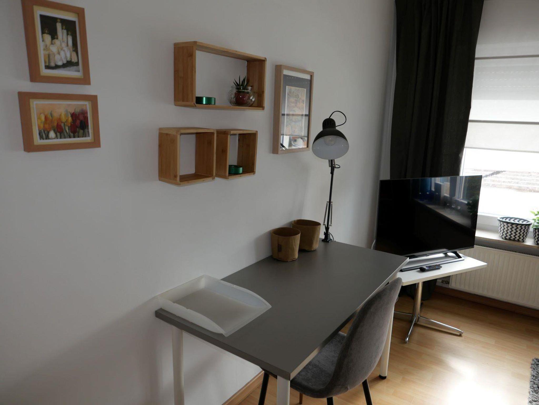 Die Wohnung ist 66 m² groß und in 2 Schlafzimmer, (ein Schlafzimmer mit1 Doppelbett mit der Größe 1,8m x 2 m; Das 2. Schlafzimmer mit 2 Einzelbetten in der Größe 0,9 m x 2 m), Wohnzimmer, Küche und Bad mit Dusche aufgeteilt. Im Vorgarten haben wir einen Freisitz mit Gartenmöbeln für unsere Gäste eingerichtet.