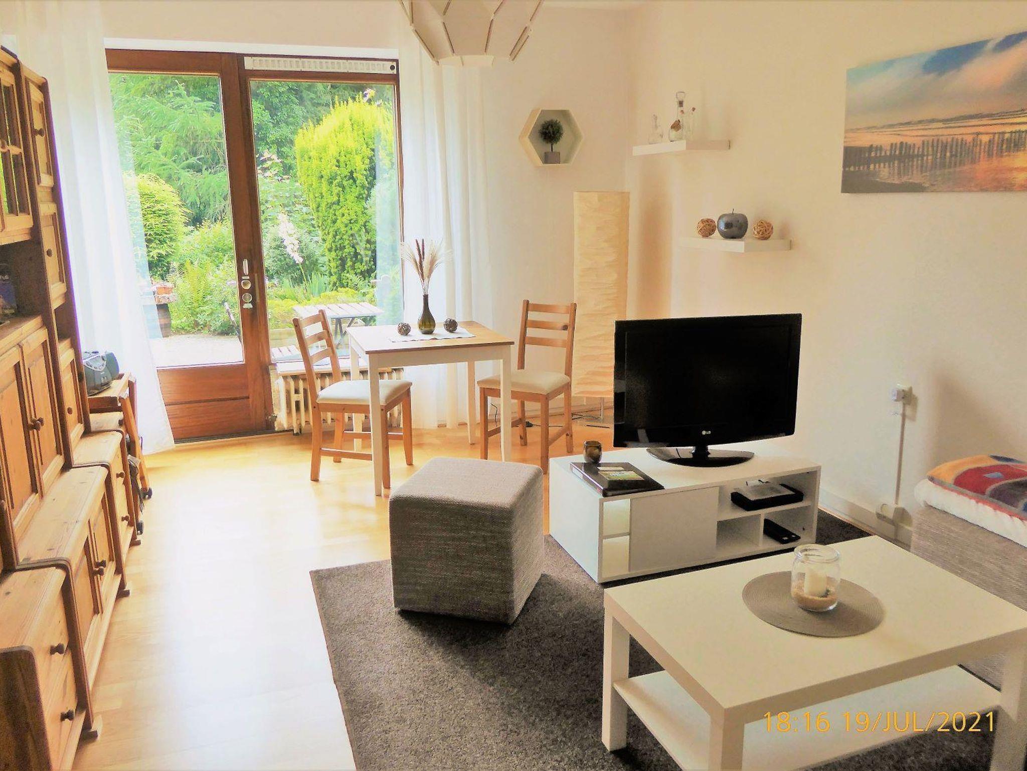 Die Wohnung wurde 2019 komplett renoviert und ist eine reine Nichtraucherwohnung. Sie besteht aus einem Wohn- und Esszimmer, einem separaten Schlafzimmer mit Doppelbett (140 x 200), einer vollausgestatteten Küche, einem Tageslicht-Bad mit Dusche sowie einem Flur.