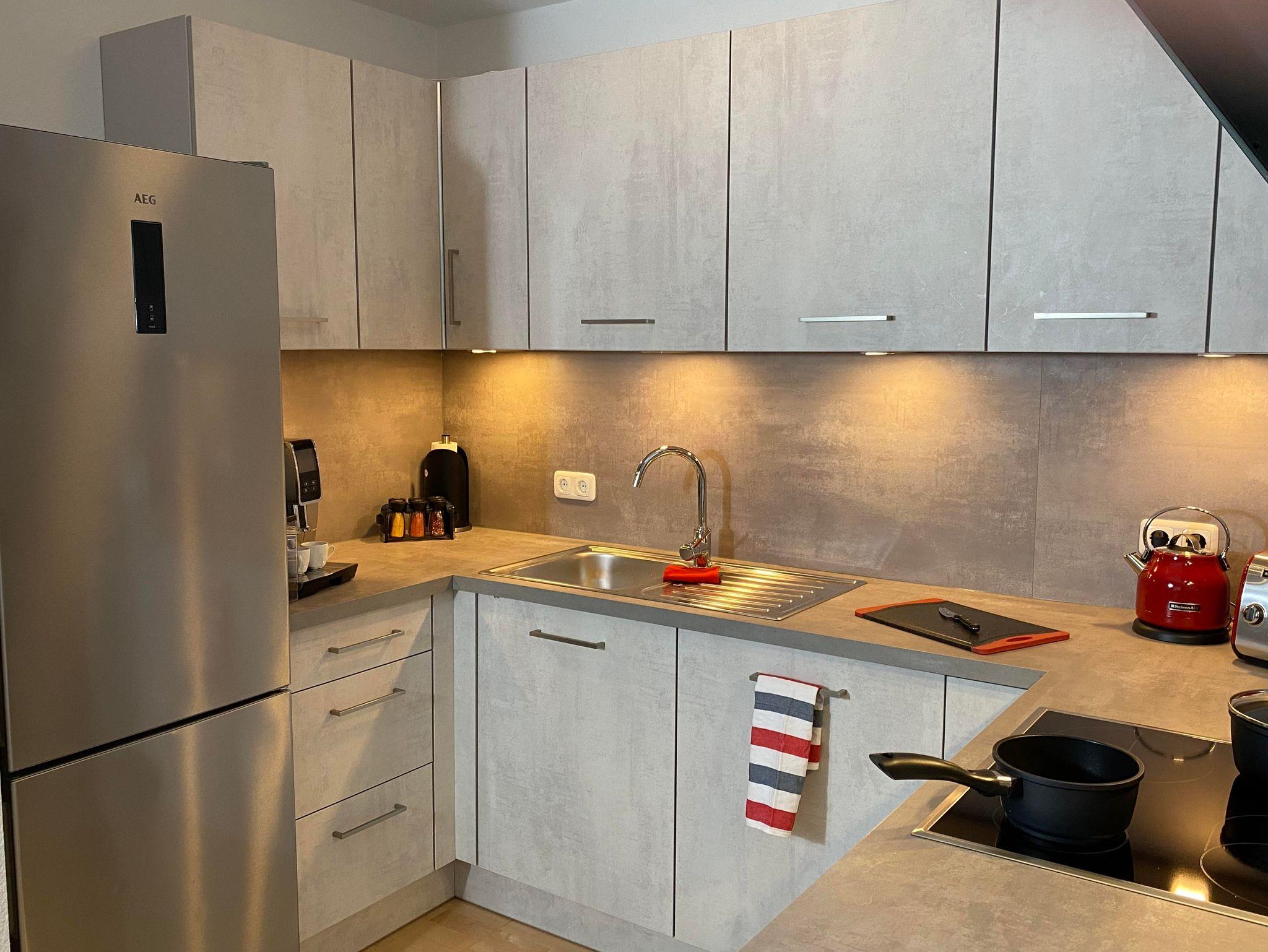 Die Wohnung verfügt einen Tiefgaragenstellplatz, ein Wohnzimmer, ein Schlafzimmer, eine Küche, Spülmaschine, Kaffeevollautomaten, Toaster von KitchAid, Wasserkocher von KitchAid, sowie ausreichend Geschirr, Besteck und Kochutensilien. Ein Abstellraum sorgt für ausreichend Stauraum. Das moderne Bad verfügt über eine Dusche und ist ebenfalls sehr geräumig. Der Balkon ist mit einem stabilen Tisch und 2 Stühlen möbliert. Hier lässt es sich gut Frühstücken. Zudem finden Sie einen hochwertigen Lafumastuhl, auf dem Sie wunderbar die Füße hochlegen und sich von Ihren Besichtigungen erholen können.