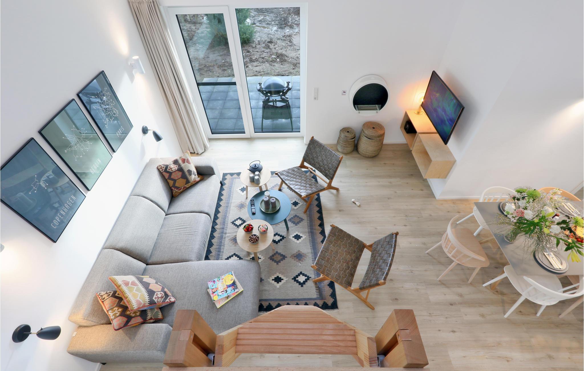Willkommen in Ihrem Ferienhaus, das Ihnen als Familie mit Kindern oder als Freundeskreis ein gemütliches, wohnliches Ambiente mit Einrichtung im skandinavischen Design bietet. Auf den fast 100 Quadratmetern finden bis zu 8 Personen immer genügend Platz für sich. Zwei Terrassen zum Sitzen und Essen in der Sonne, der Bio-Kamin, Hot Tub und die eigene Sauna lassen keine Wünsche offen.