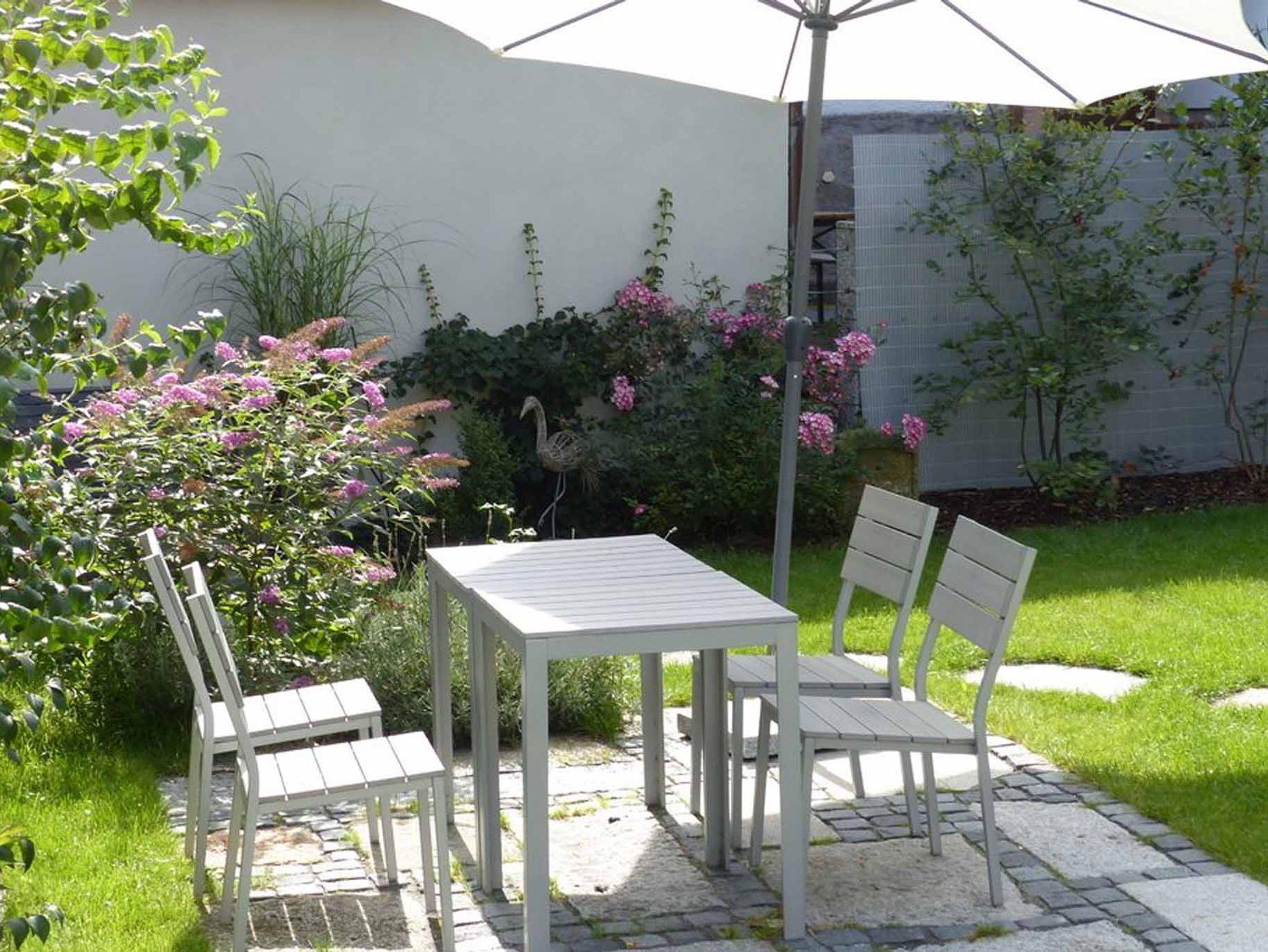 Vor der Tür stehen im Sommer schöne Gartenmöbel, die zum Ausruhen einladen. In unserem großen Naschgarten können Leckermäuler verschiedene Beeren gleich vom Strauch naschen und jederzeit auf dem großen Grillplatz mit unserem Webergrill bei schönem Wetter grillen.