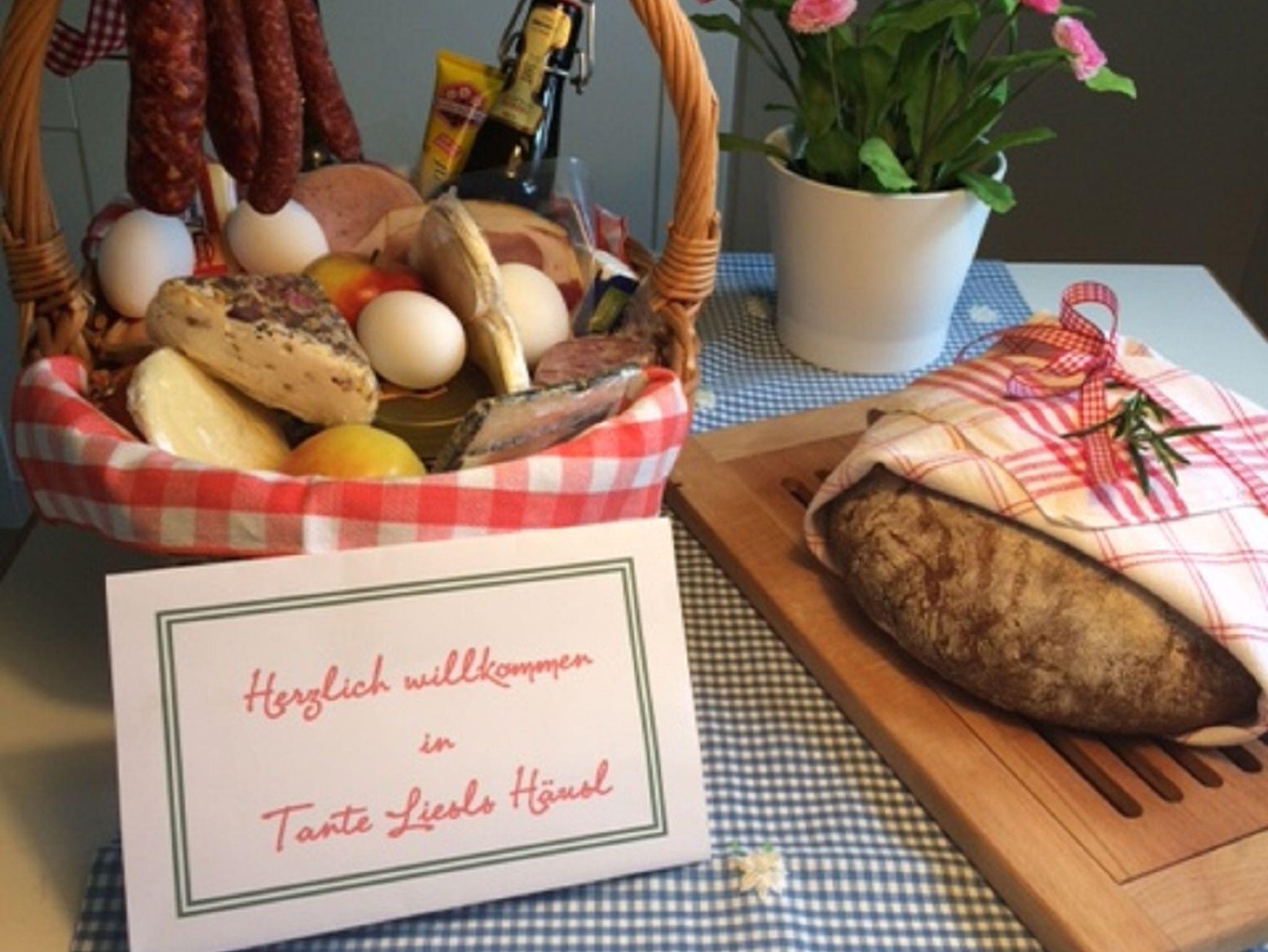 Auf Wunsch einen Begrüßungskorb mit regionalen Spezialitäten